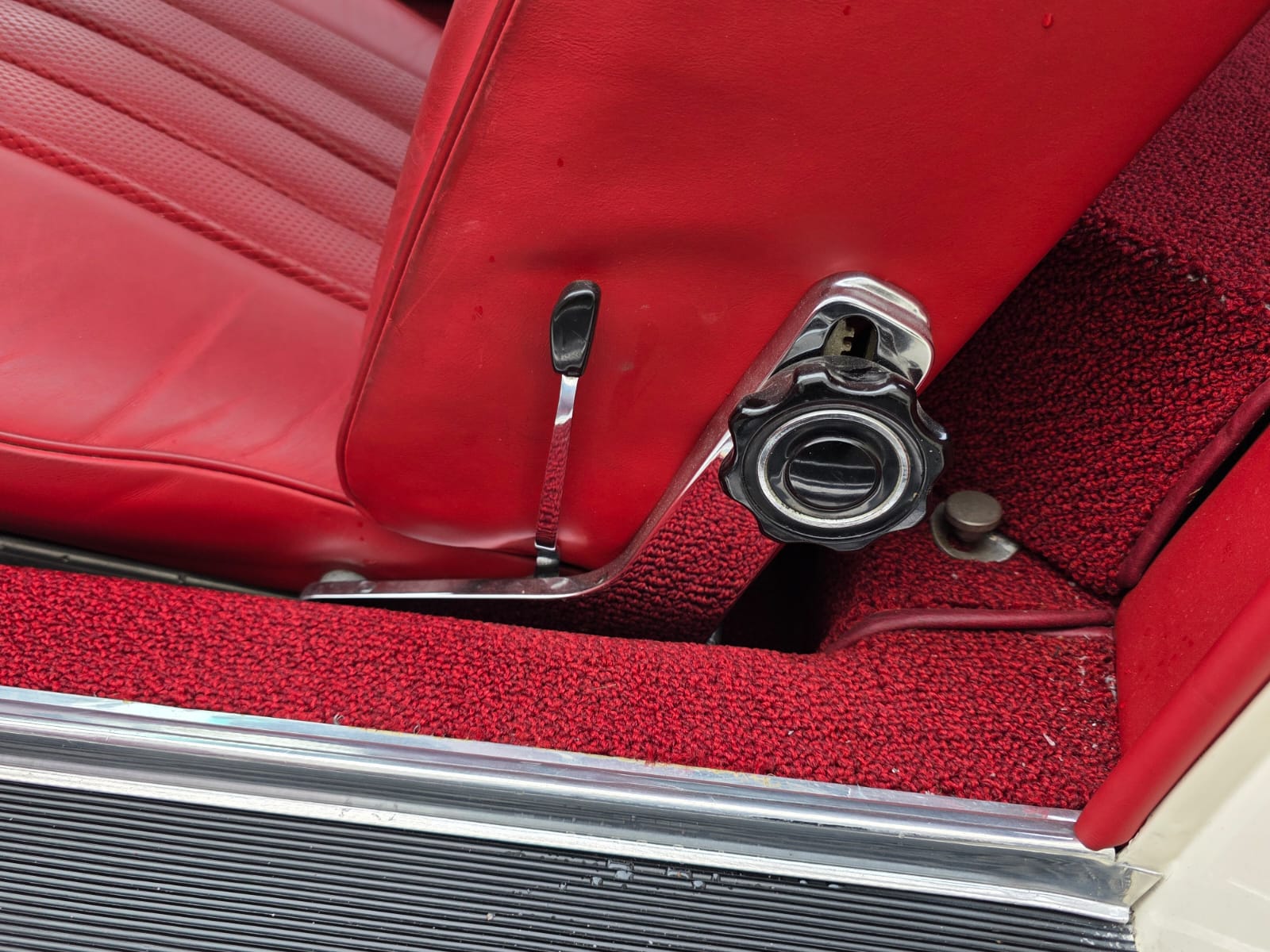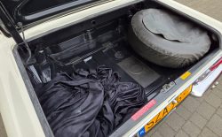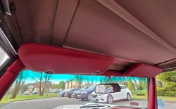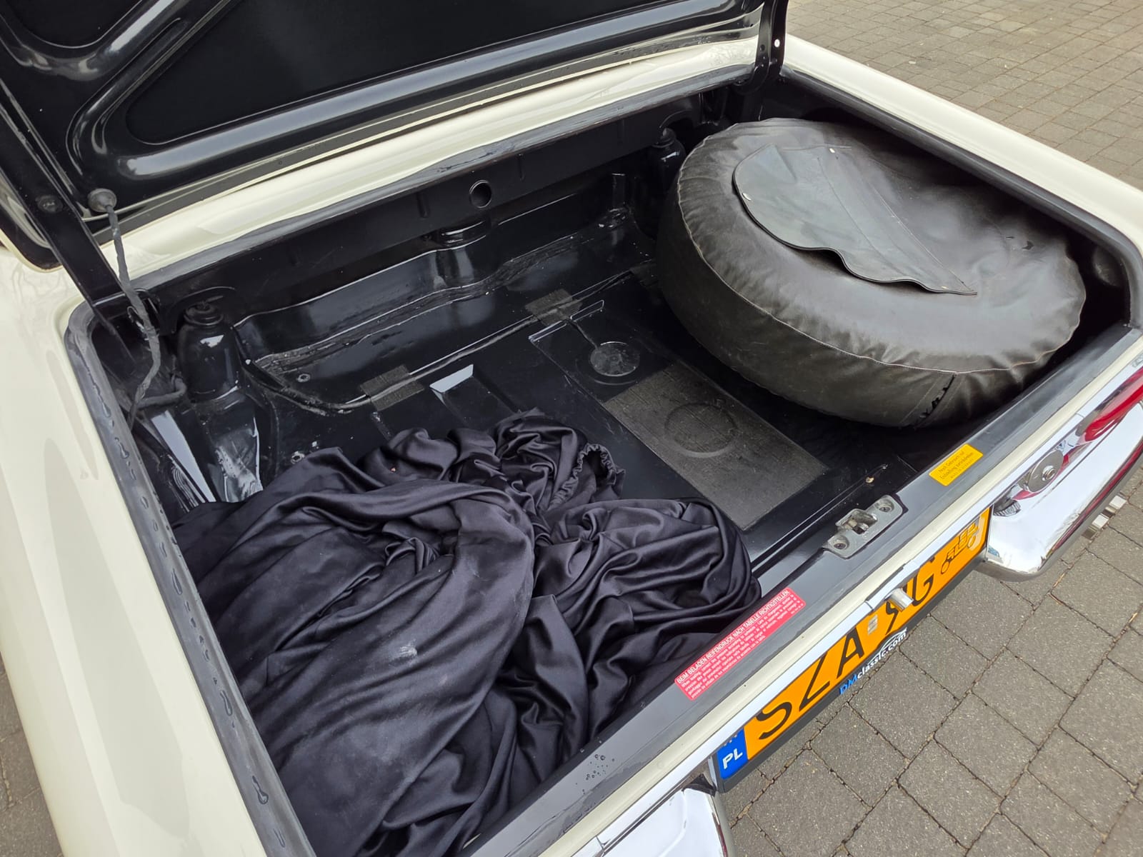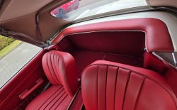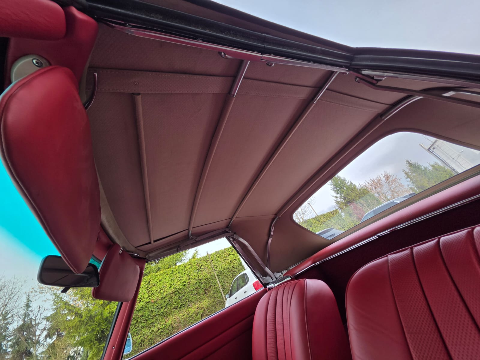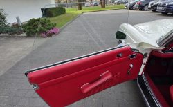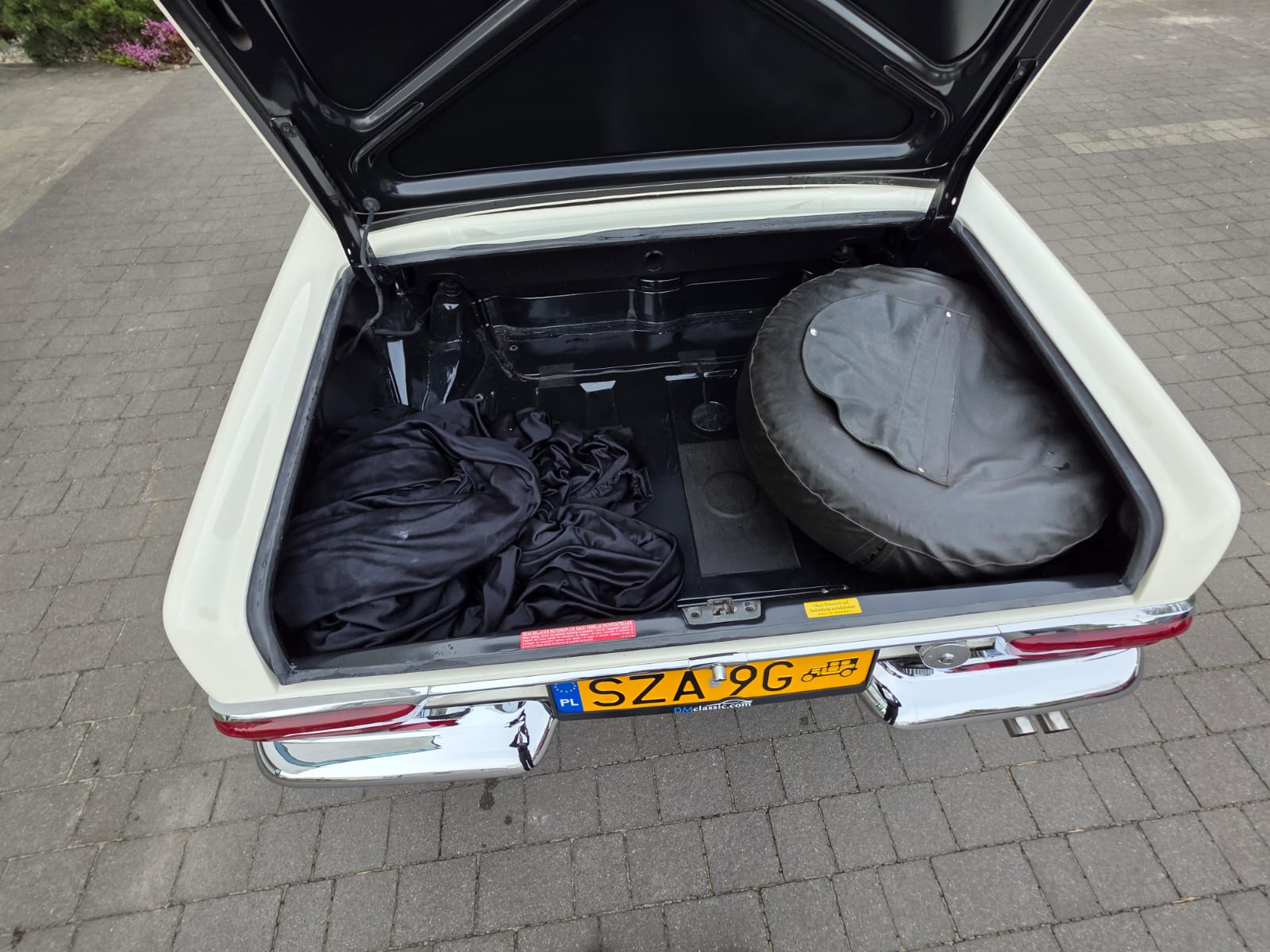 Auto prezentuje się bardzo dobrze wizualnie – klasyczne połączenie białego lakieru z czerwonym wnętrzem i czarnym miękkim dachem. Wnętrze utrzymane w dobrym stanie, tapicerka zadbana. Samochód ma zamontowane całkowicie nowe poszycie dachu.