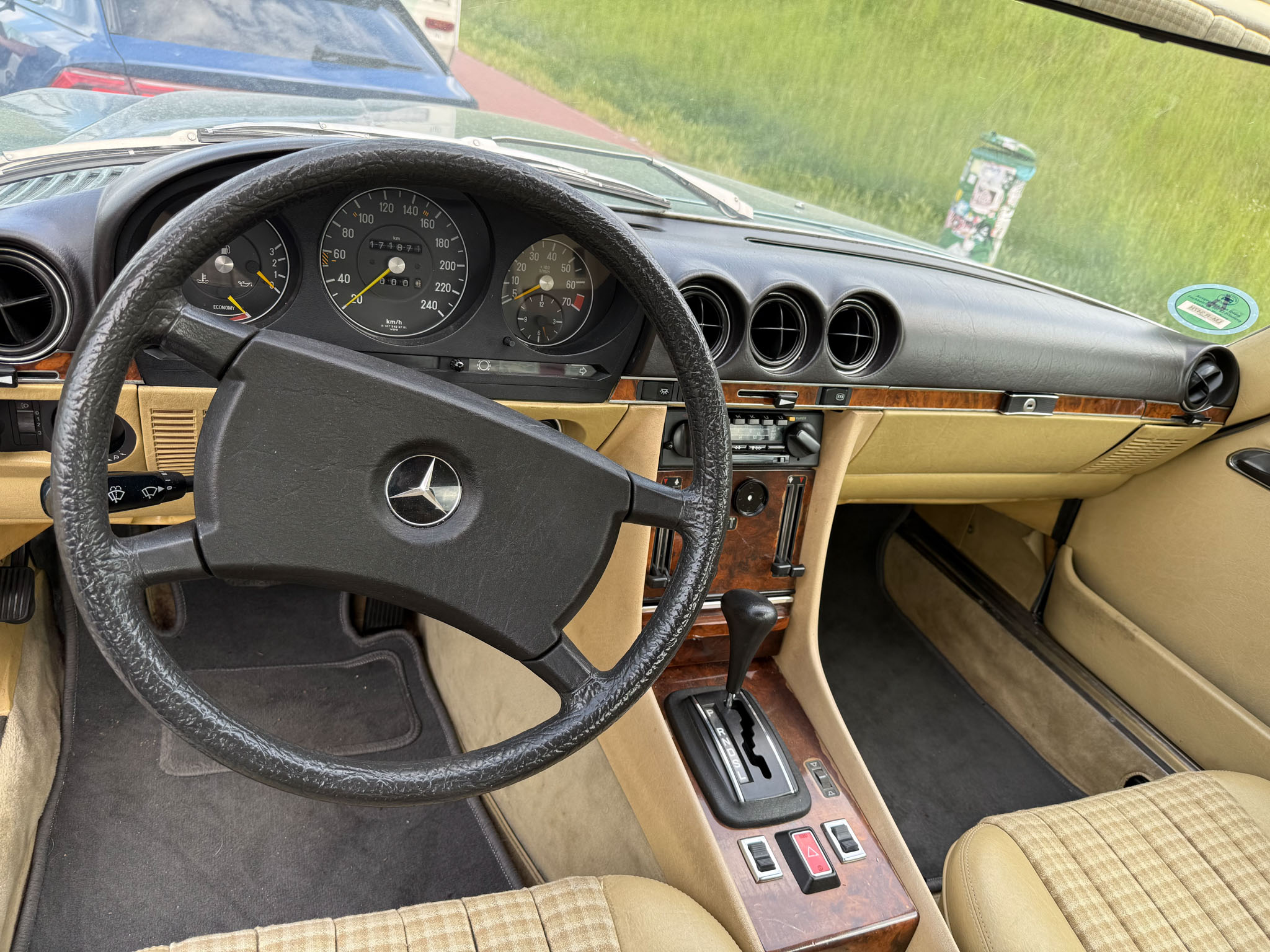 Mercedes 280 SLC C107 konstrukcyjnie był blisko spokrewniony z modelem SL. Dłuższy rozstaw osi i zamknięte nadwozie zmieniły jego charakter. Dzięki temu bardziej niż do niedzielnej przejażdżki po bulwarze nadawał się on na dalsze, komfortowe podróże. Silnik 2,8 l pojawił się w ofercie w kilka lat po debiucie, w odpowiedzi na oczekiwania klientów oczekujących bardziej ekonomicznych pojazdów w dobie kryzysu paliwowego. Dwuwałkowy, sześciocylindrowy silnik zapewniał wcale nie mniej wigoru, niż oferowane równolegle znaczcie cięższe silniki V8. Dzięki temu 280 SLC sprawiał wrażenie prowadzącego się lżej i bardziej precyzyjnie, i przez wielu pasjonatów dziś jest tym poszukiwanym. Ten egzemplarz ma piękną kolorystykę i zachowanym jest w imponująco oryginalnym stanie.