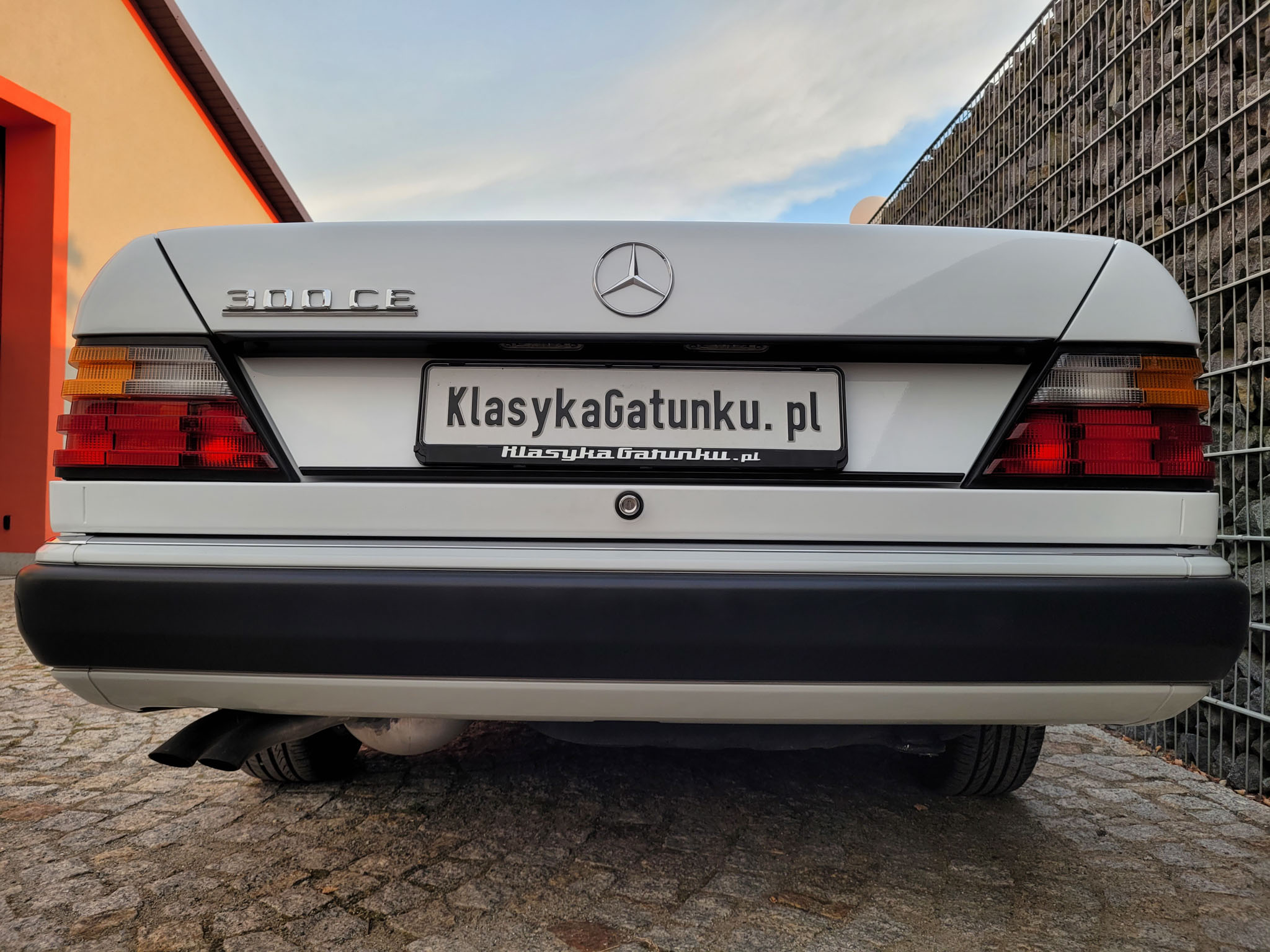 Przedmiotem sprzedaży jest Mercedes 300CE w kolorze „147U arktikweiss” z szarą materiałową tapicerką. Sprowadzony ze Szwajcarii od drugiego właściciela. Samochód ma 34 lata, mimo to jest zachowany w perfekcyjnym stanie, wygląda jakby dwa lata temu wyjechał z fabryki. Posiada udokumentowaną historię serwisową, jest książka serwisowa oraz książka badań spalin „Abgas”. Samochód był garażowany i użytkowany sezonowo, dzięki temu dotrwał do dnia dzisiejszego w nadzwyczajnym, oryginalnym stanie, bez jakiejkolwiek renowacji.