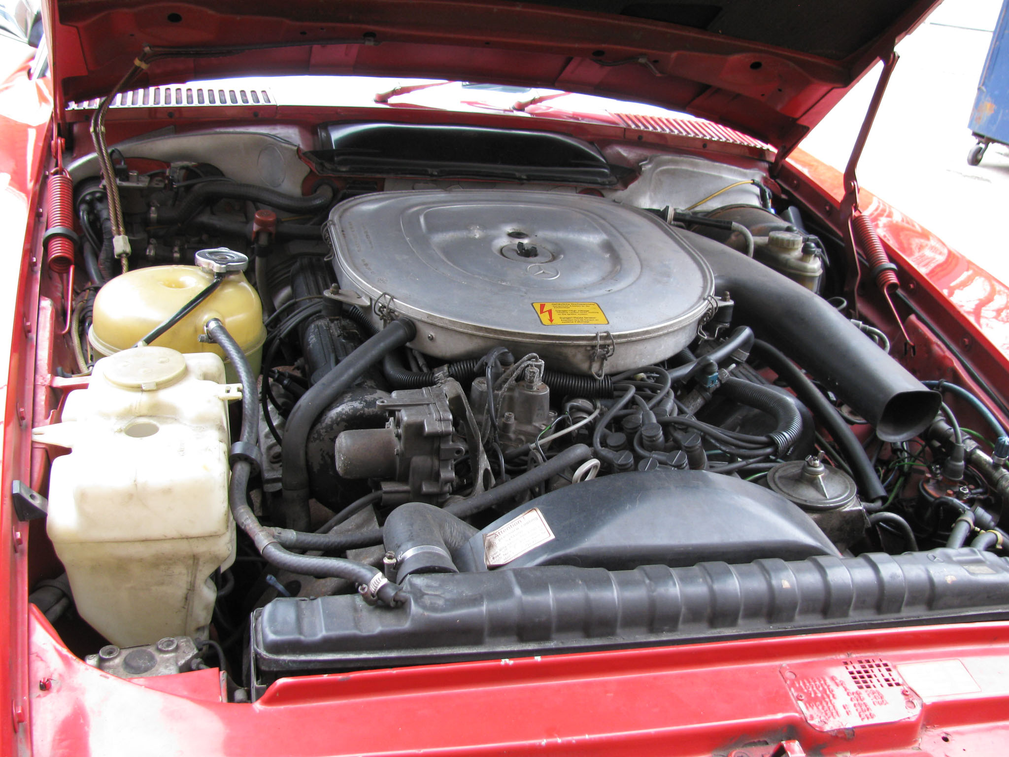 Mercedes-Benz 380 SL, R107 – auto w b. dobrym stanie w kolorze mexican red; sprawny technicznie.
