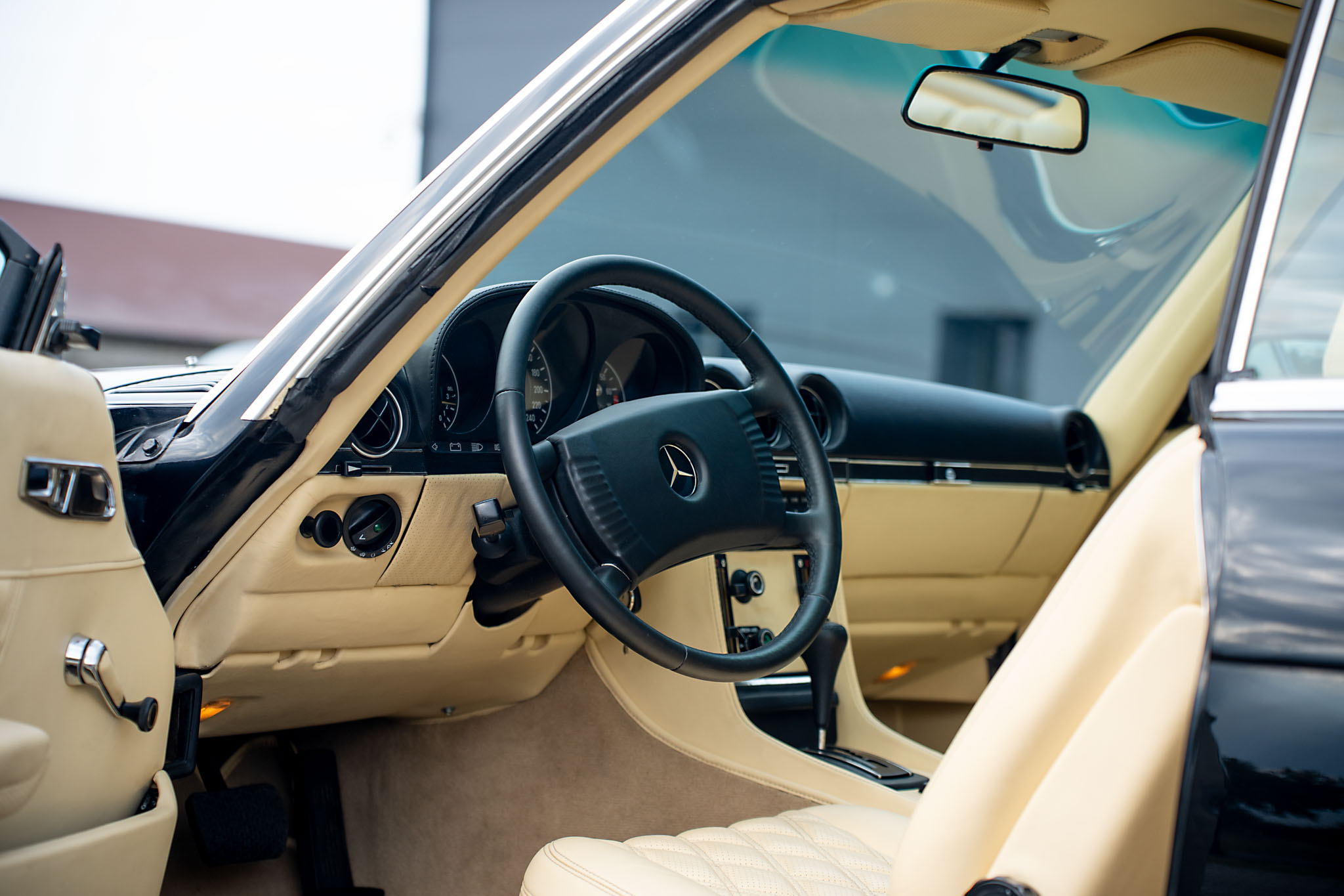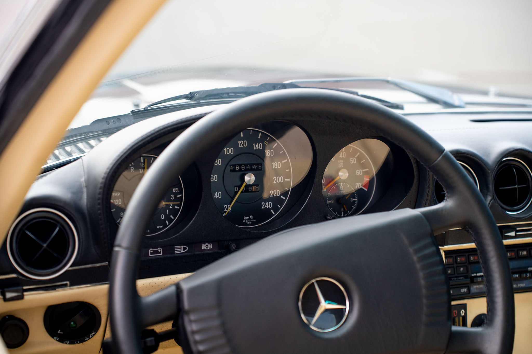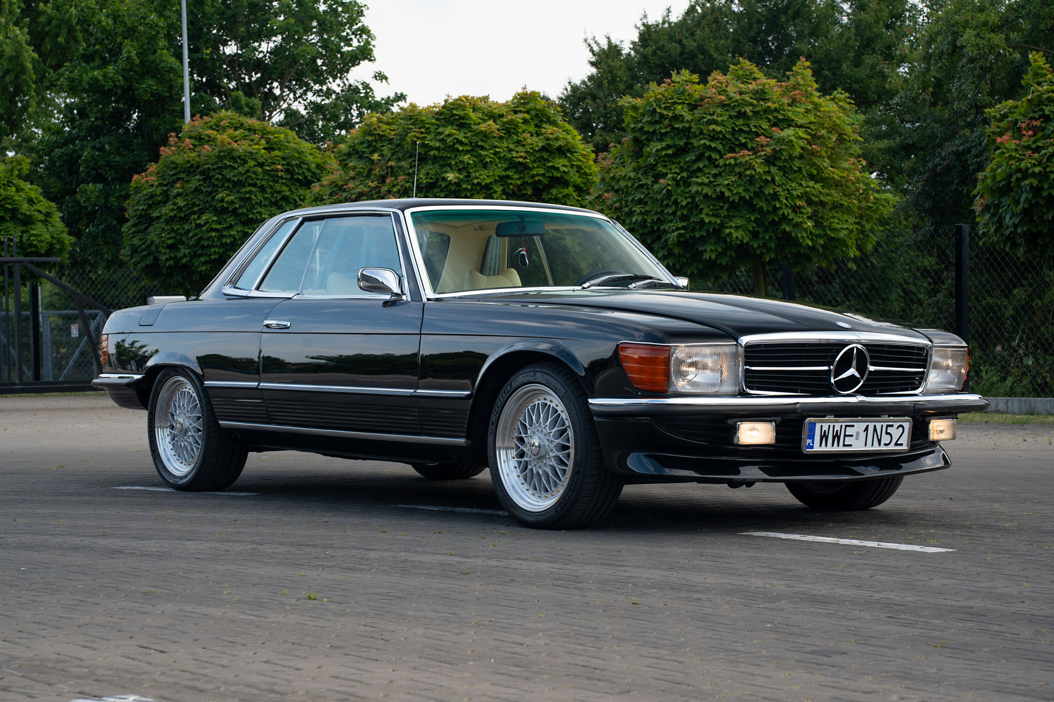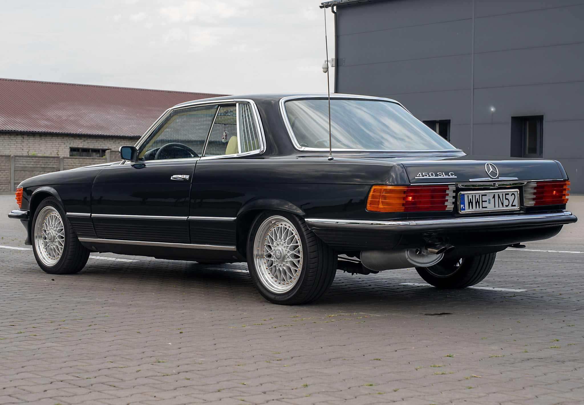 Mercedes 450 SLC C107 to niemiecki przedstawiciel klasy Gran Turismo. Zbudowany na bazie roadstera SL, otrzymał wydłużony rozstaw osi i charakterystyczne osłony za tylnymi szybami – dodane, aby możliwe było całkowite opuszczenie tylnej szyby. Jego sylwetka jest niezwykle smukła, co łatwo podkreślić kilkoma modyfikacjami. Właściciel tego egzemplarza postarał się, by miał on jeszcze bardziej luksusowy wizerunek, niż za młodu. Auto zostało odrestaurowane, wyposażone w 17-calowe felgi i otrzymało nowy, ekskluzywny wzór tapicerki.