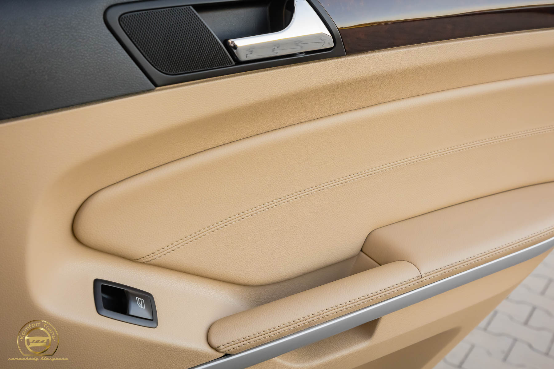 Folia PPF na wnękach klamek oraz dekorach drewnianych wnętrza.