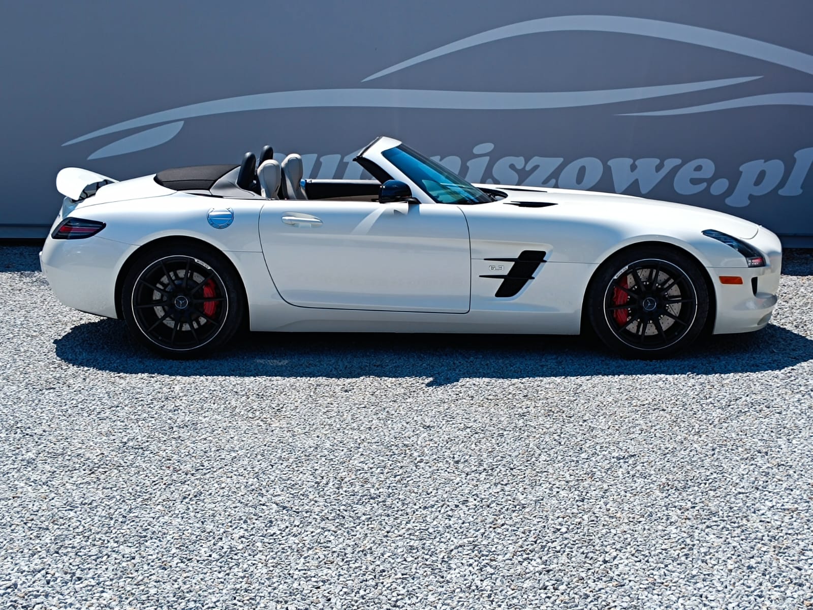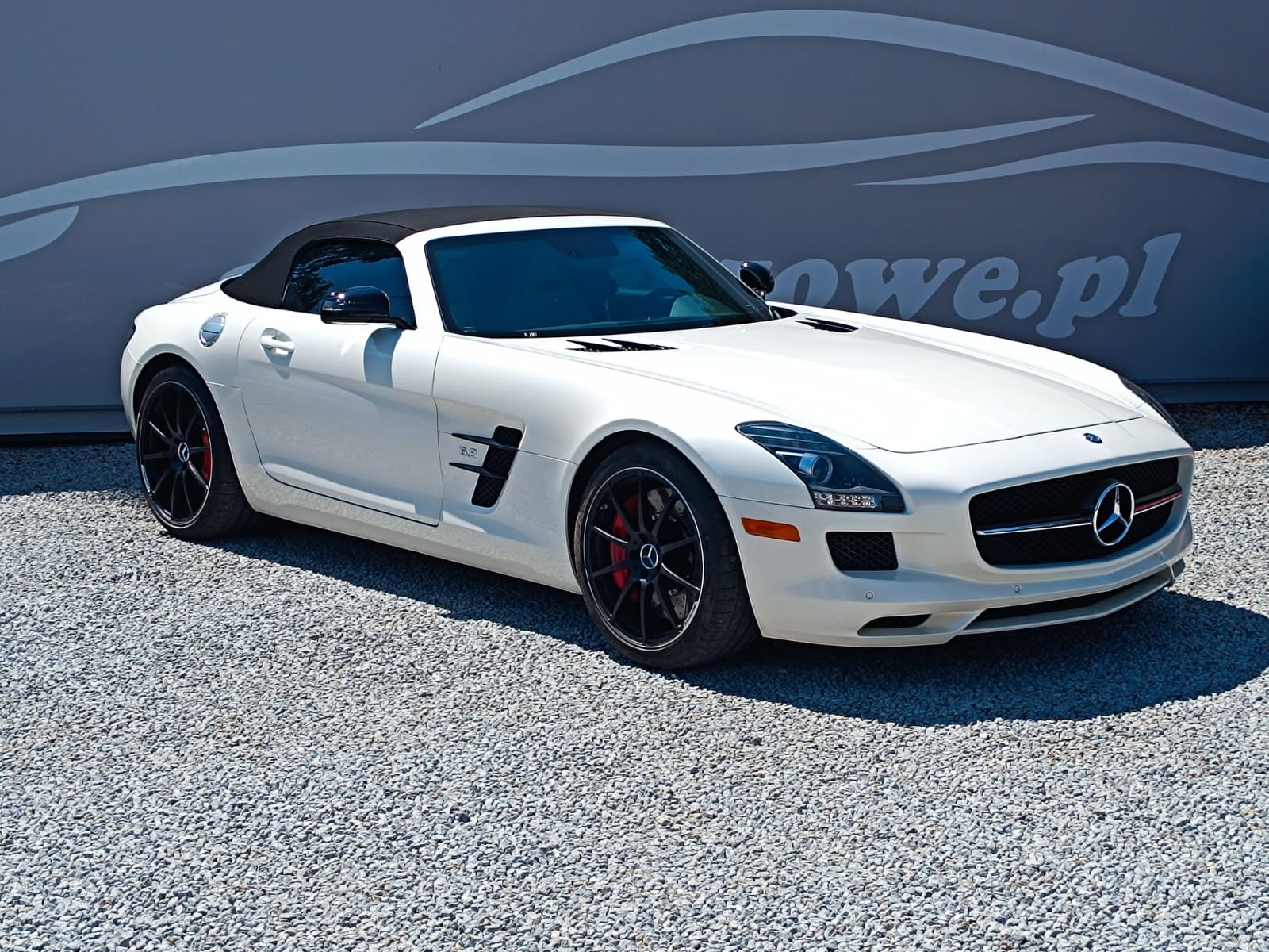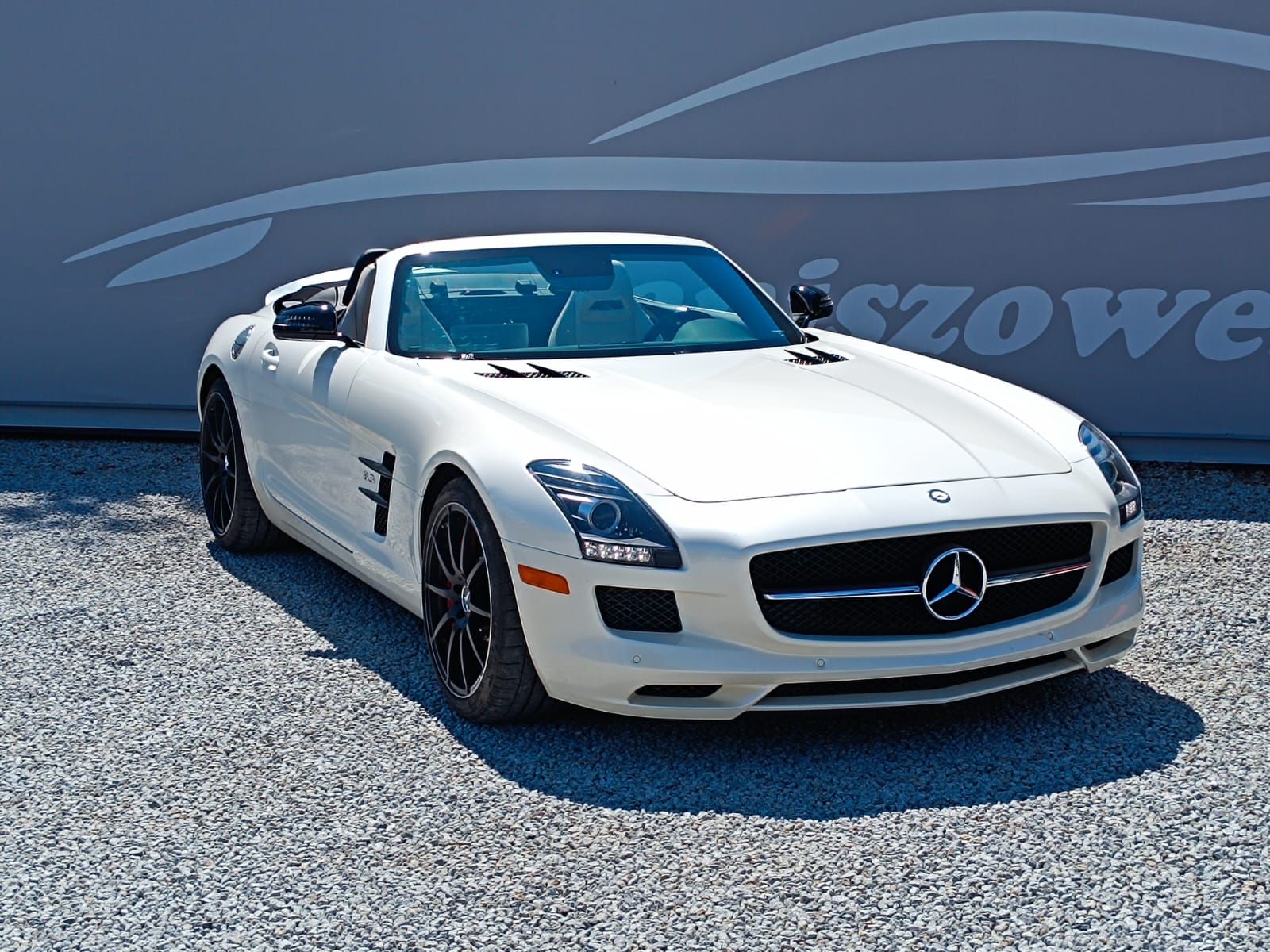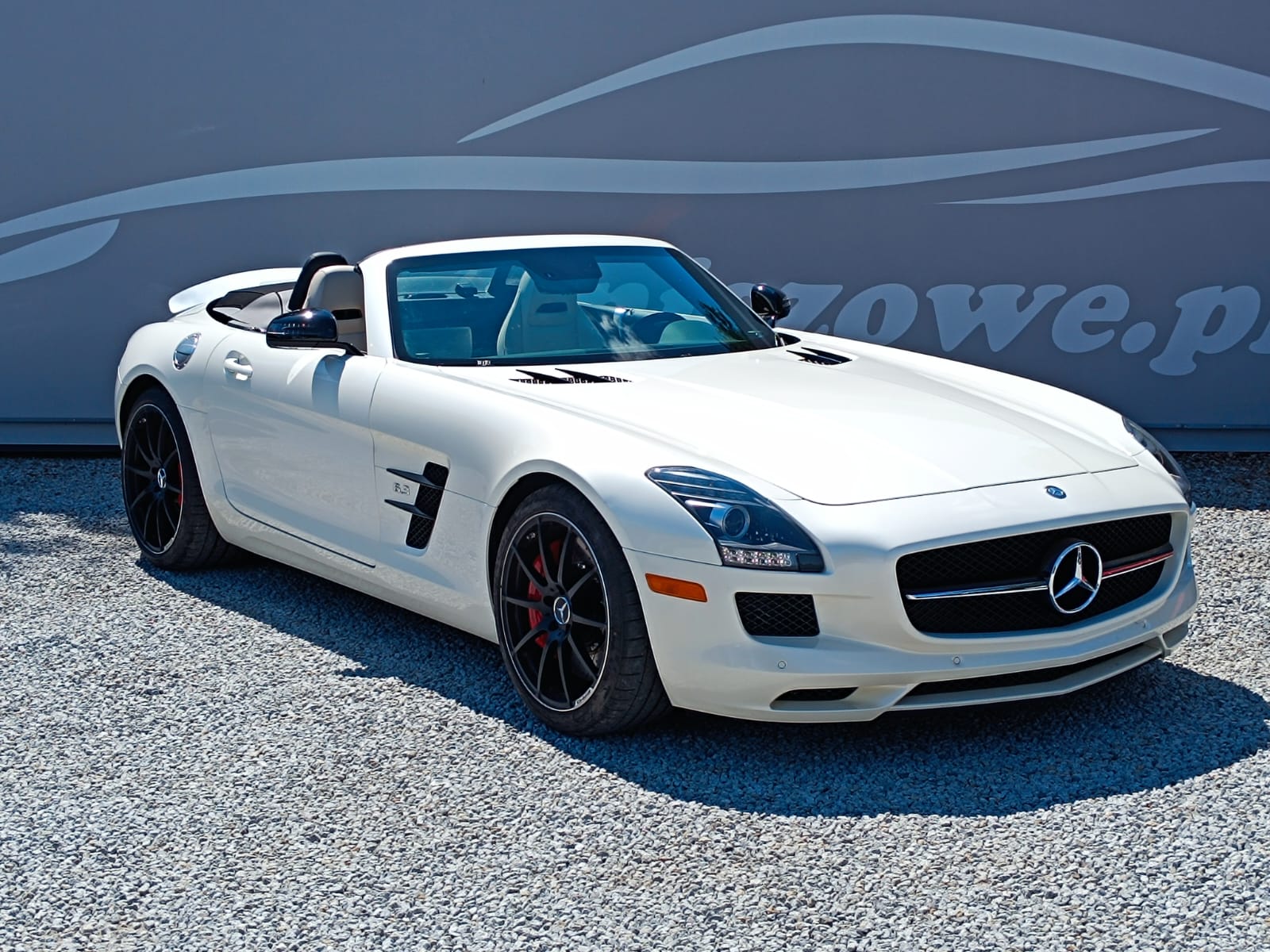 SLS został zaprezentowany po raz pierwszy we Frankfurcie w 2009 roku. Skonstruowany od podstaw przez firmę AMG, w 2012 roku doczekał się wersji Roadster. Jest niski, smukły i oszałamiająco stylowy oraz rzadki. Wyprodukowano ich zaledwie około 4000 sztuk. Jego osiągi są imponujące. Napędzany tym samym, 6,2-litrowym silnikiem V8 co coupé, w wersji GT gotowy jest zaoferować 591 KM. Ponieważ w tej wersji dach nie odizolowuje od doznań zewnętrznych, w dźwięku wydechu roadstera można usłyszeć drobne niuanse, których w coupé po prostu nie słychać. To bez wątpienia fascynujące auto.