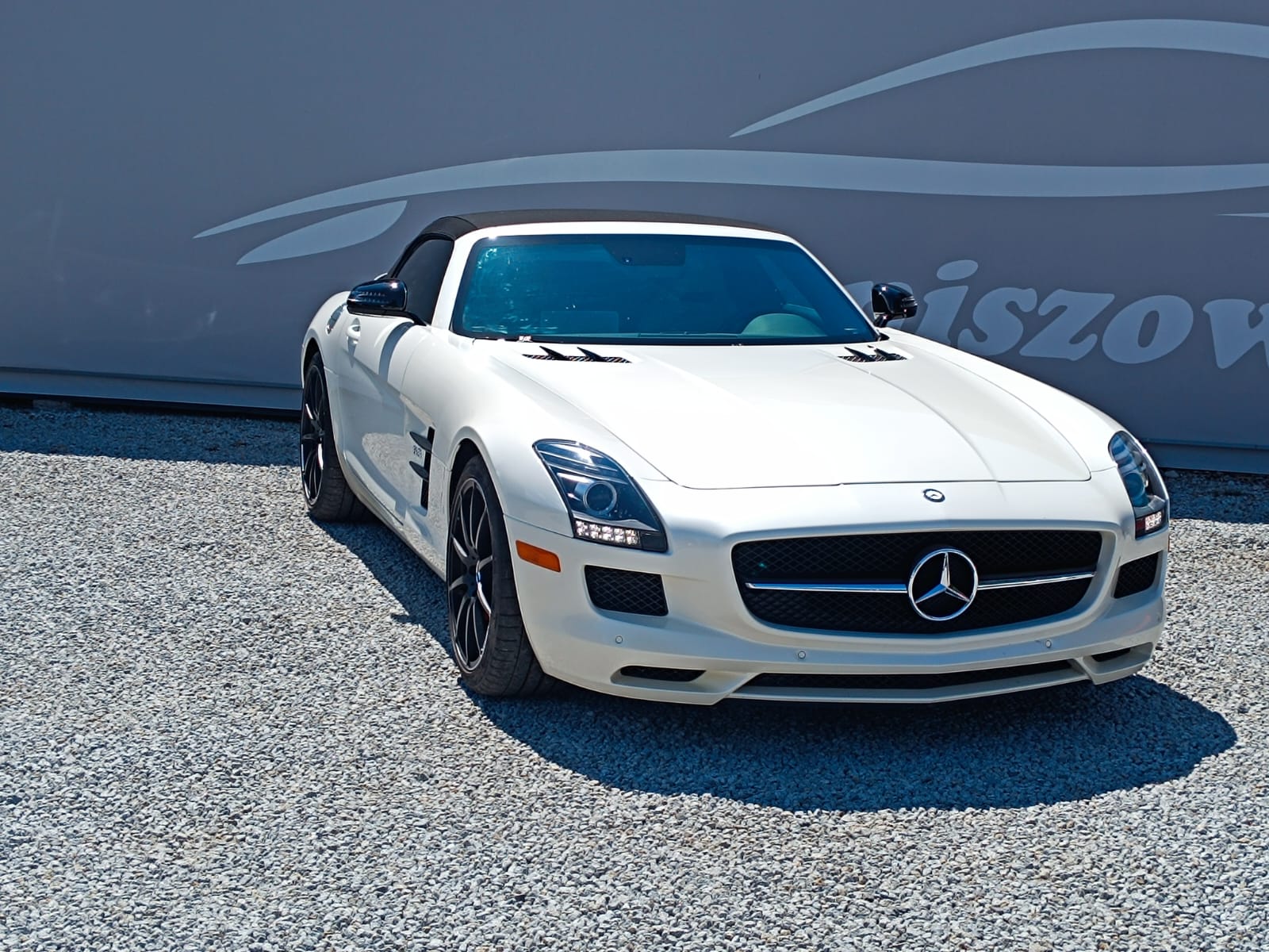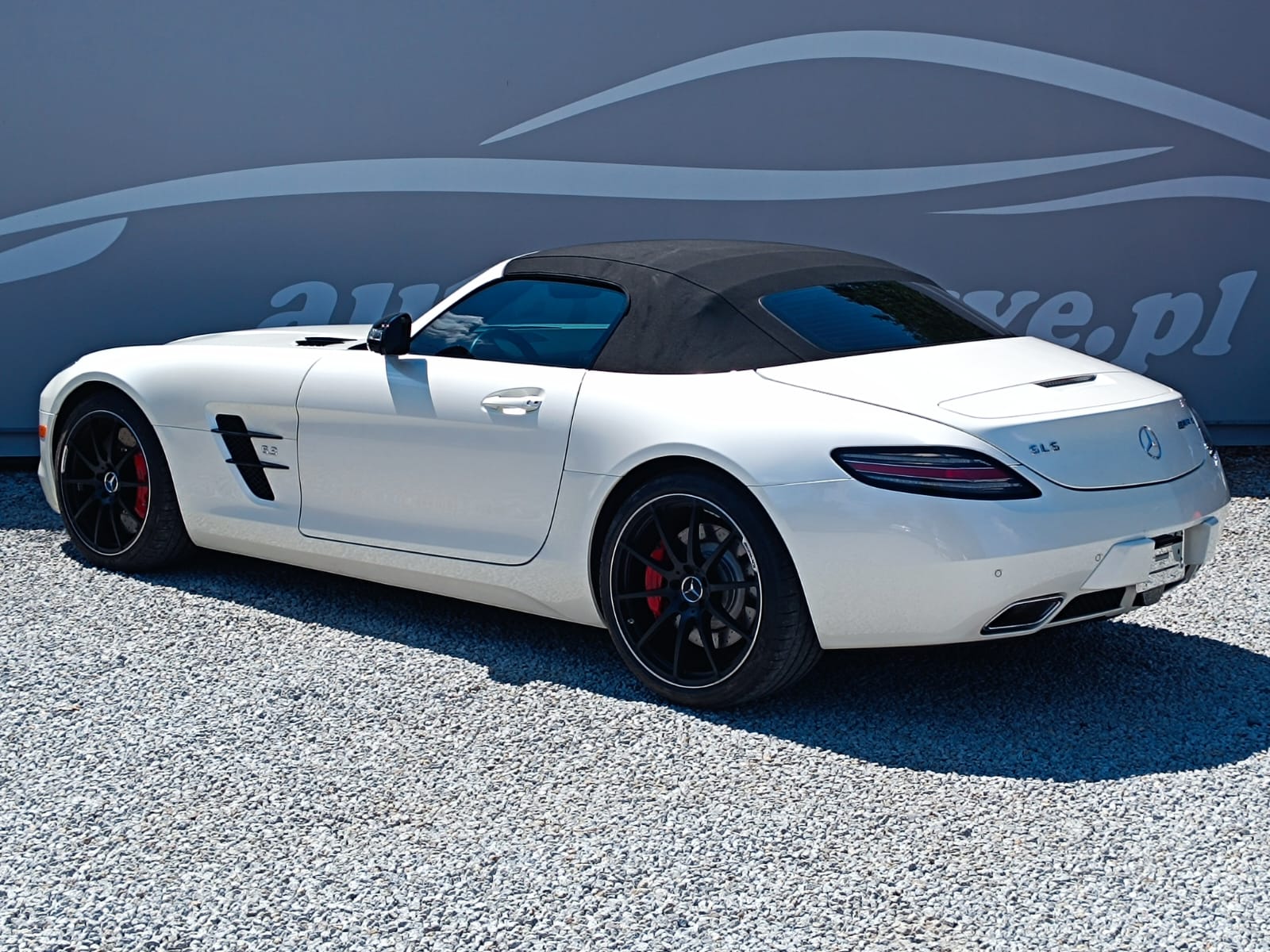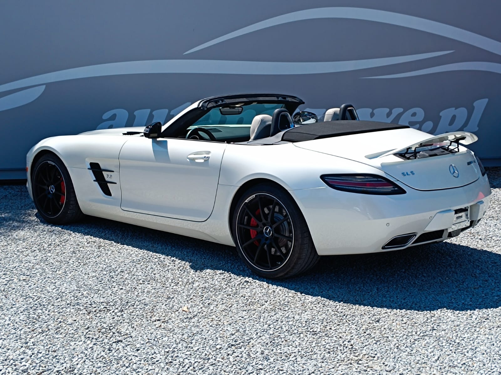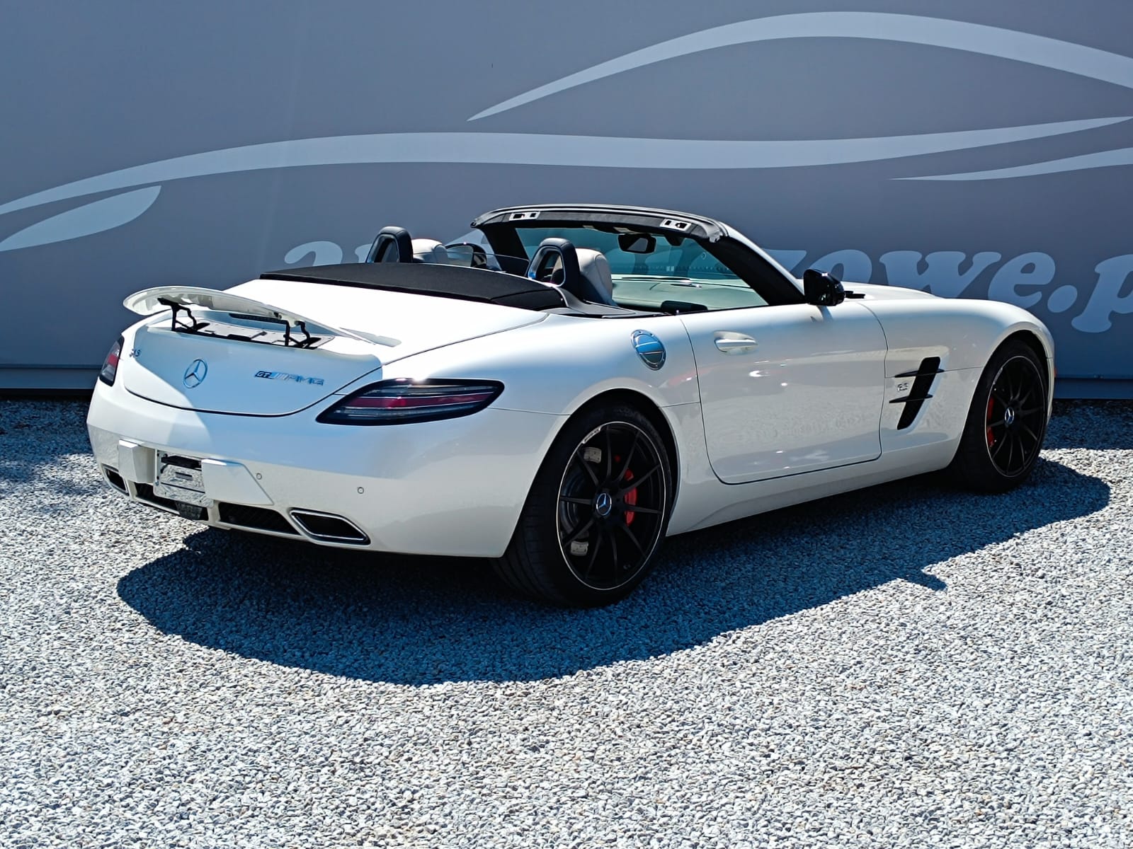 SLS został zaprezentowany po raz pierwszy we Frankfurcie w 2009 roku. Skonstruowany od podstaw przez firmę AMG, w 2012 roku doczekał się wersji Roadster. Jest niski, smukły i oszałamiająco stylowy oraz rzadki. Wyprodukowano ich zaledwie około 4000 sztuk. Jego osiągi są imponujące. Napędzany tym samym, 6,2-litrowym silnikiem V8 co coupé, w wersji GT gotowy jest zaoferować 591 KM. Ponieważ w tej wersji dach nie odizolowuje od doznań zewnętrznych, w dźwięku wydechu roadstera można usłyszeć drobne niuanse, których w coupé po prostu nie słychać. To bez wątpienia fascynujące auto.