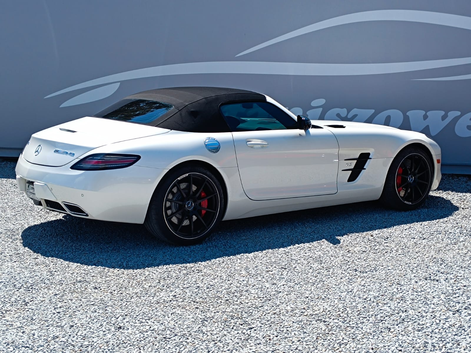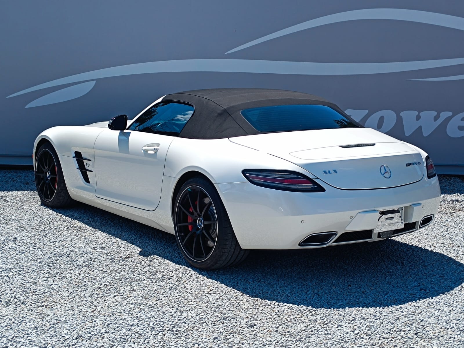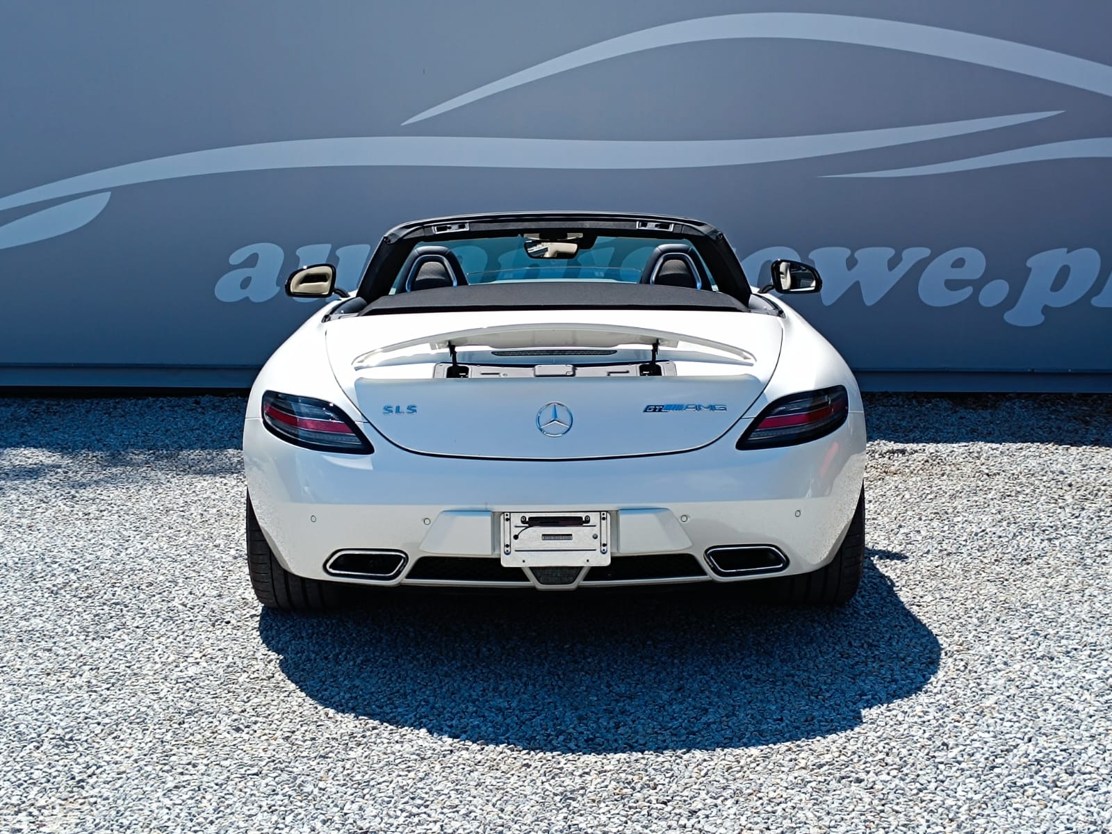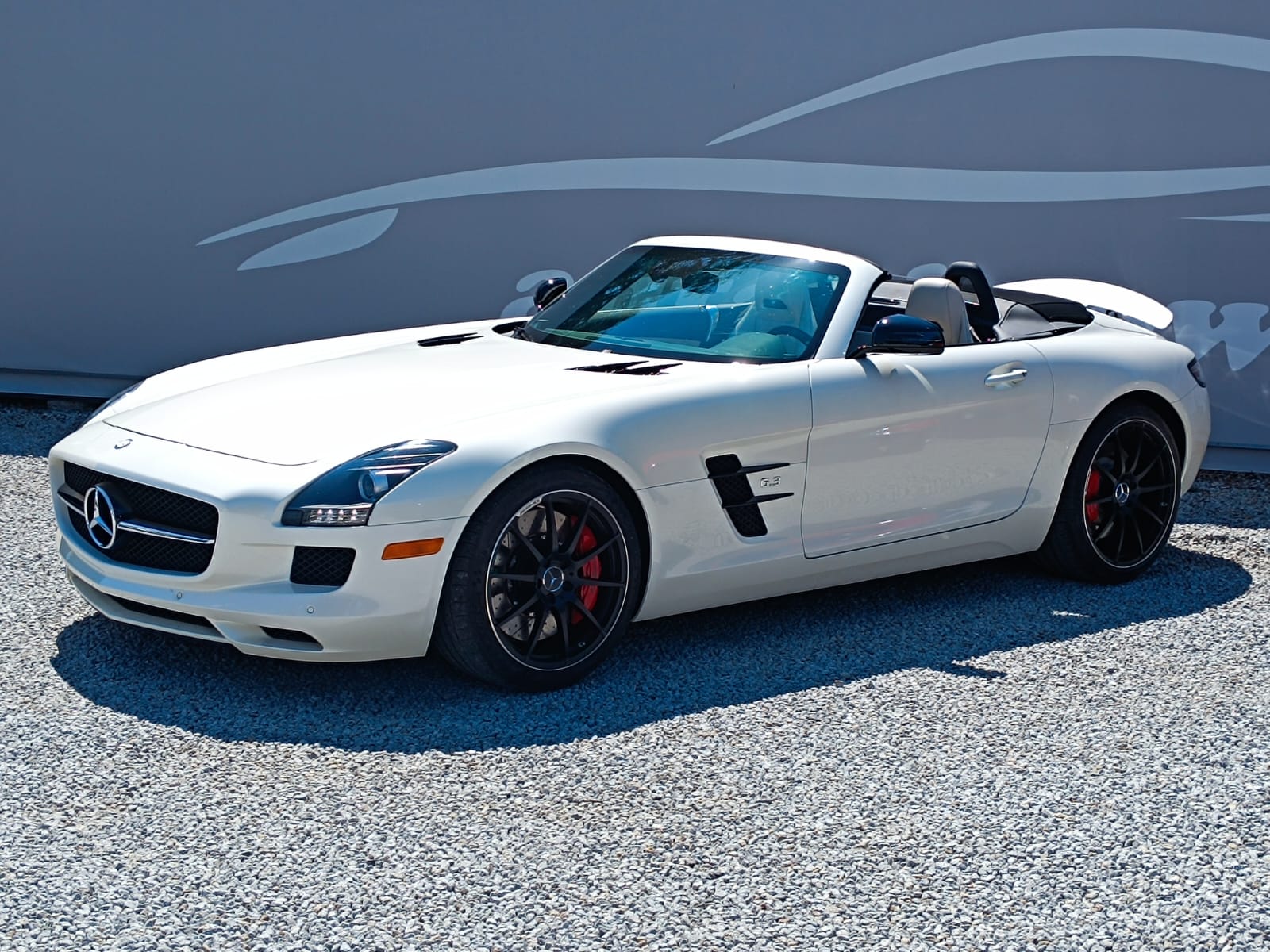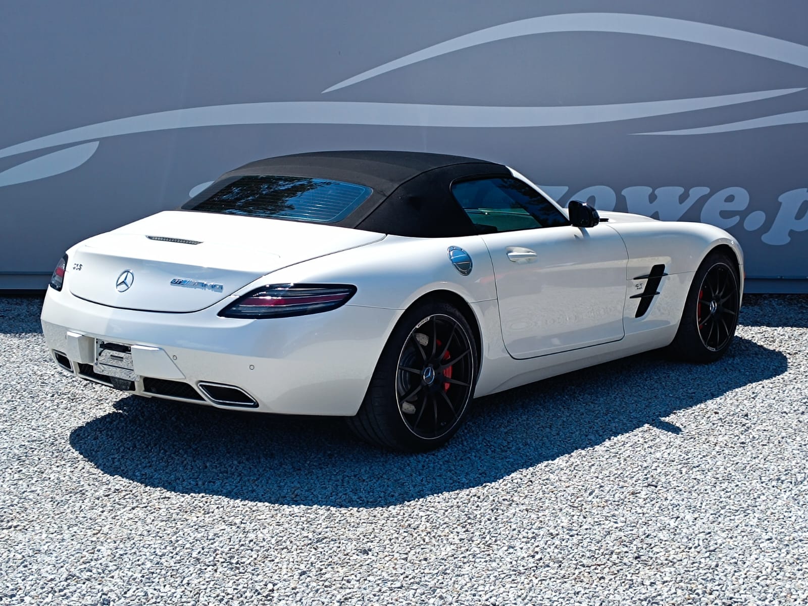 SLS został zaprezentowany po raz pierwszy we Frankfurcie w 2009 roku. Skonstruowany od podstaw przez firmę AMG, w 2012 roku doczekał się wersji Roadster. Jest niski, smukły i oszałamiająco stylowy oraz rzadki. Wyprodukowano ich zaledwie około 4000 sztuk. Jego osiągi są imponujące. Napędzany tym samym, 6,2-litrowym silnikiem V8 co coupé, w wersji GT gotowy jest zaoferować 591 KM. Ponieważ w tej wersji dach nie odizolowuje od doznań zewnętrznych, w dźwięku wydechu roadstera można usłyszeć drobne niuanse, których w coupé po prostu nie słychać. To bez wątpienia fascynujące auto.
