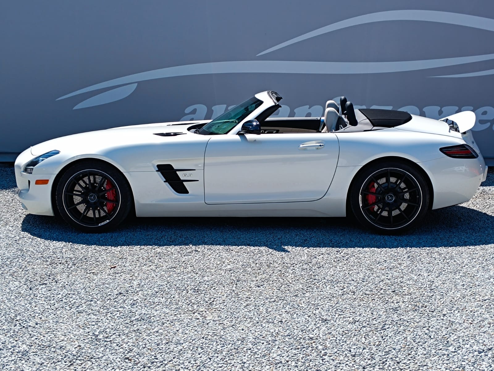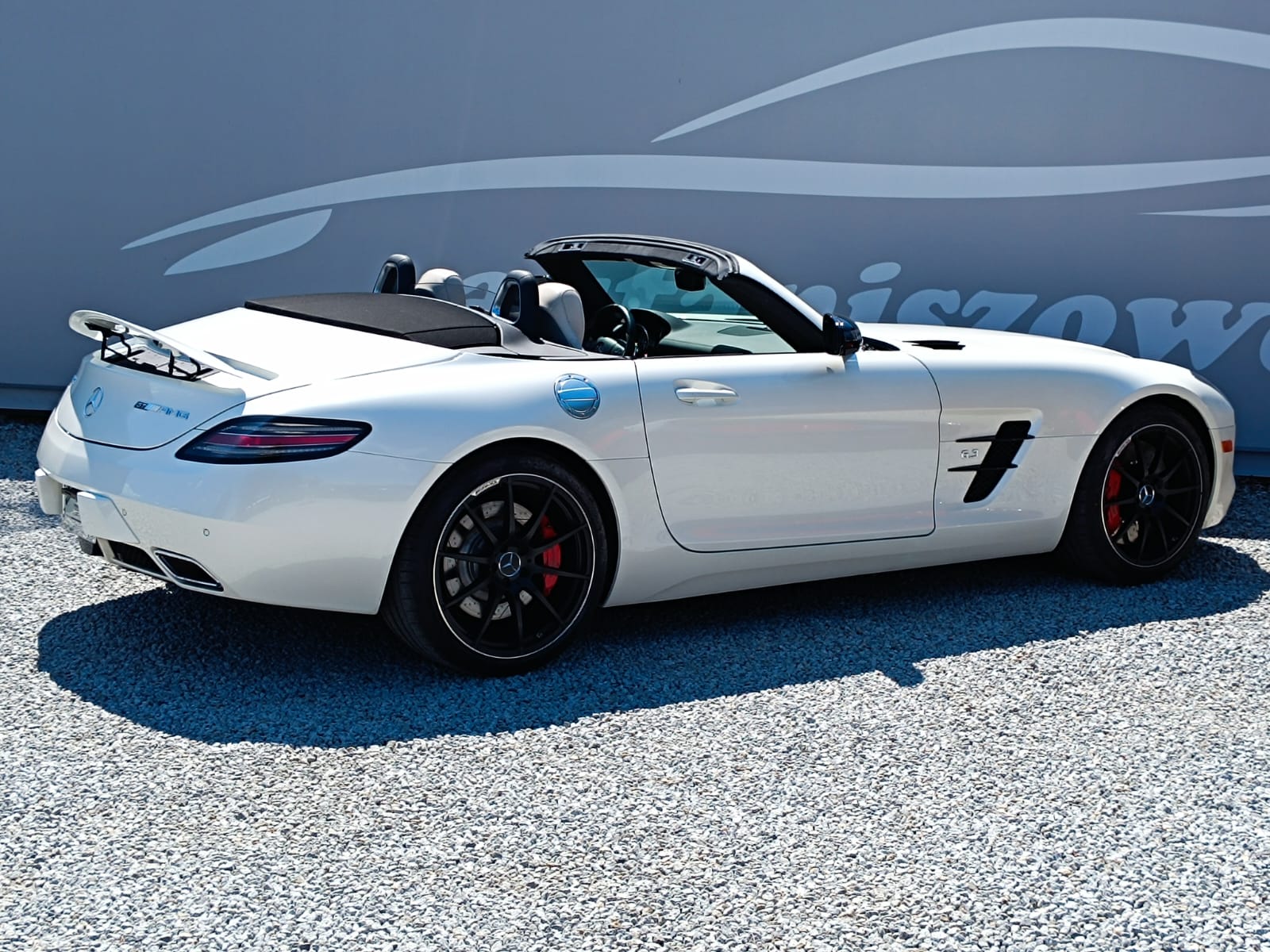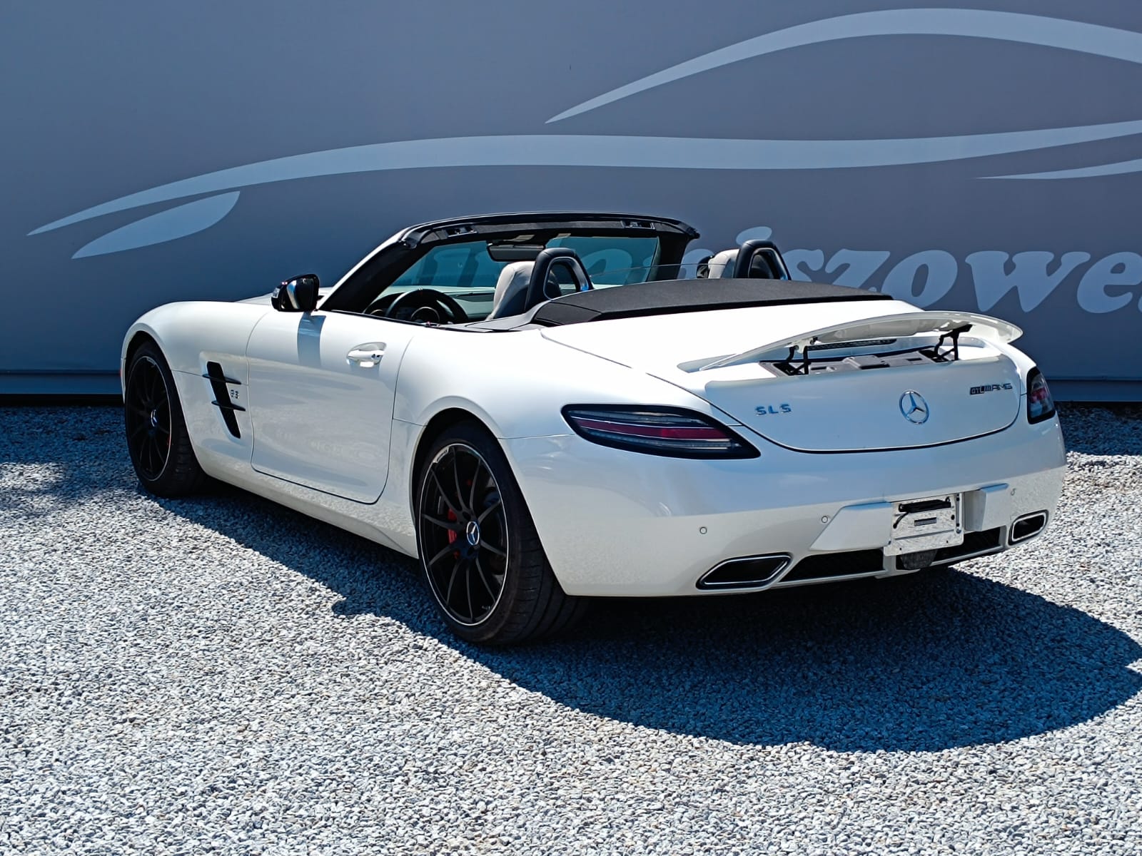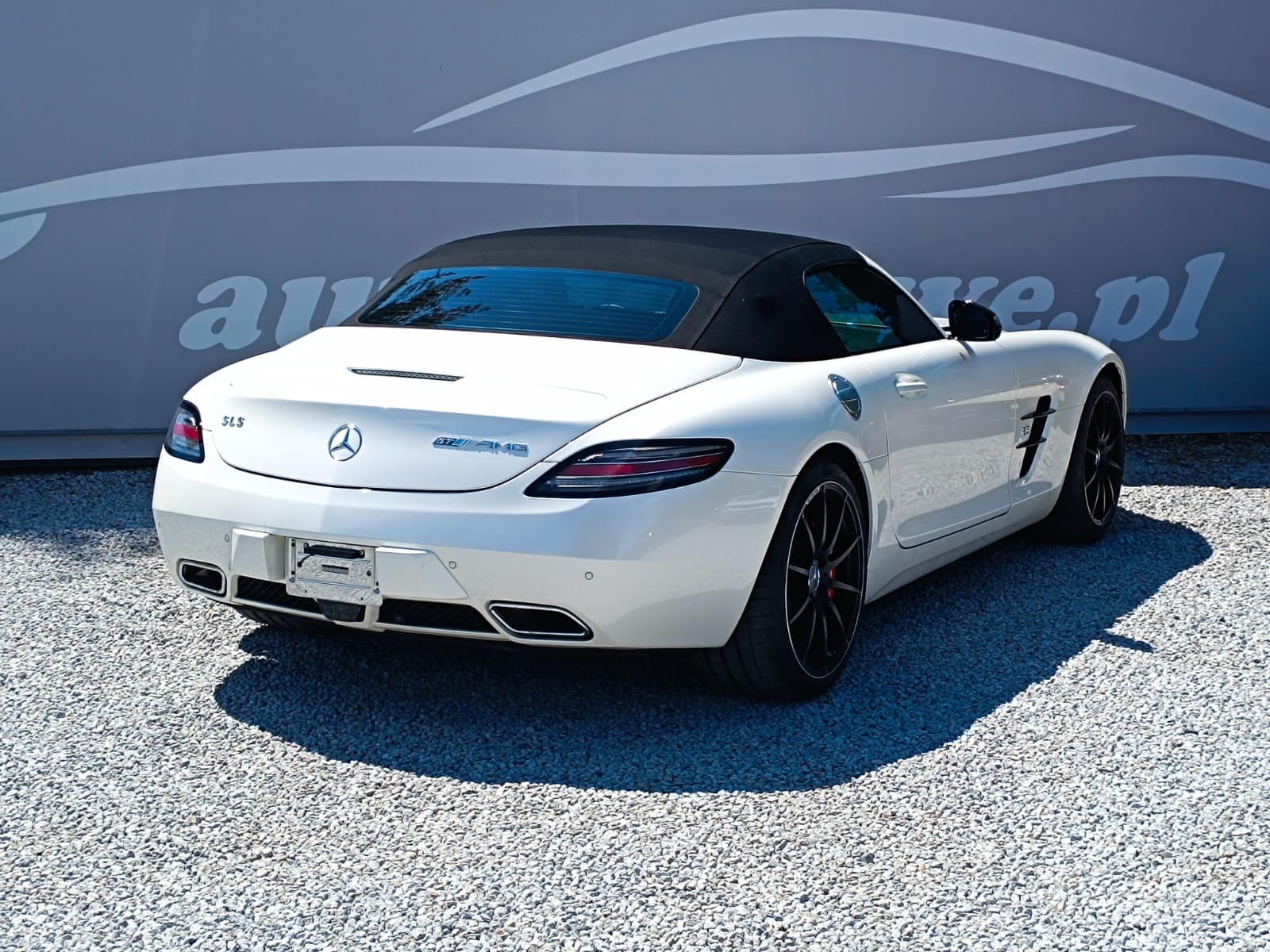 SLS został zaprezentowany po raz pierwszy we Frankfurcie w 2009 roku. Skonstruowany od podstaw przez firmę AMG, w 2012 roku doczekał się wersji Roadster. Jest niski, smukły i oszałamiająco stylowy oraz rzadki. Wyprodukowano ich zaledwie około 4000 sztuk. Jego osiągi są imponujące. Napędzany tym samym, 6,2-litrowym silnikiem V8 co coupé, w wersji GT gotowy jest zaoferować 591 KM. Ponieważ w tej wersji dach nie odizolowuje od doznań zewnętrznych, w dźwięku wydechu roadstera można usłyszeć drobne niuanse, których w coupé po prostu nie słychać. To bez wątpienia fascynujące auto.