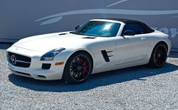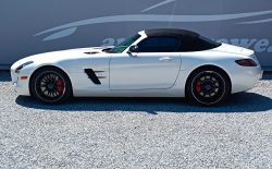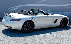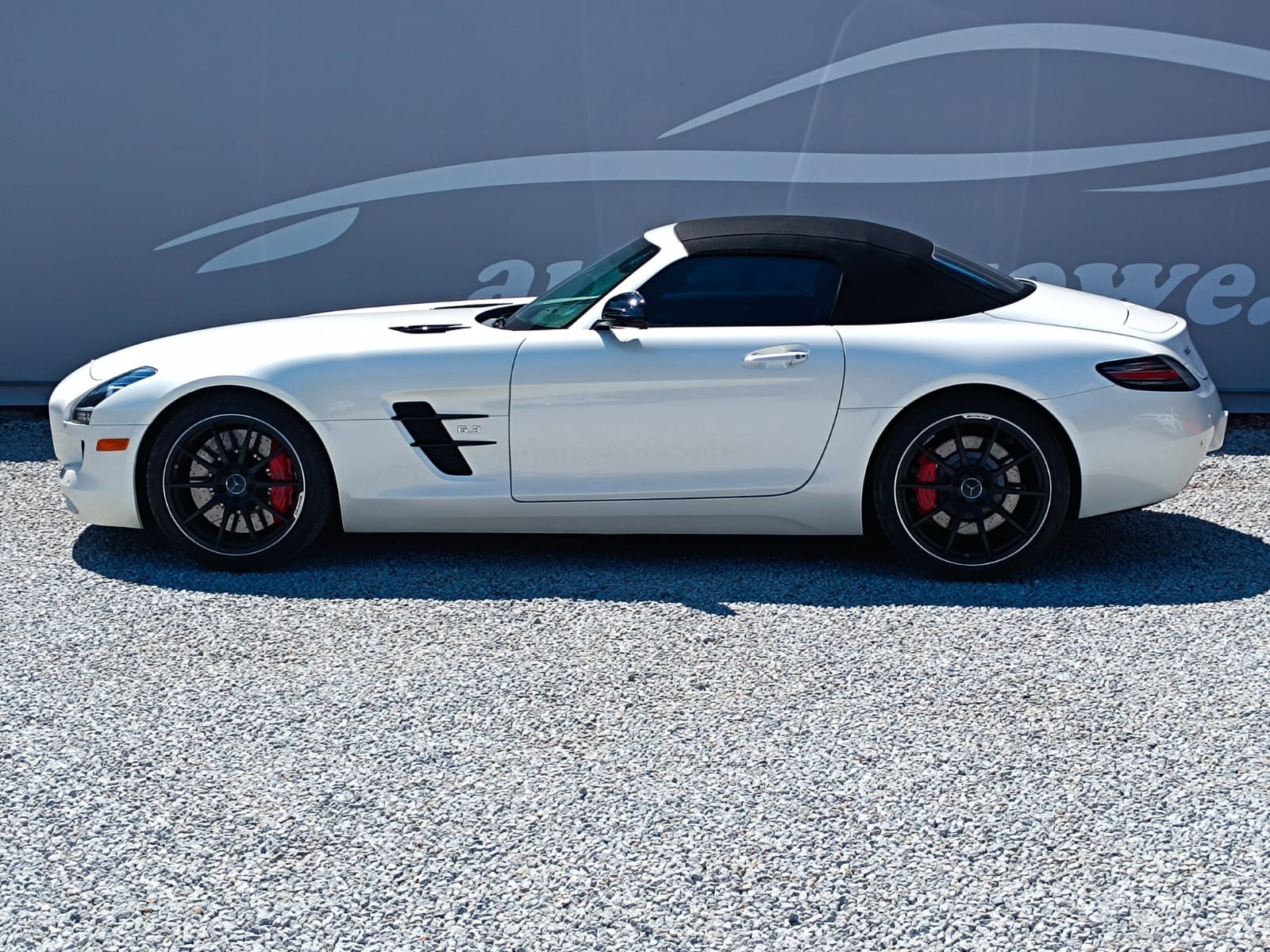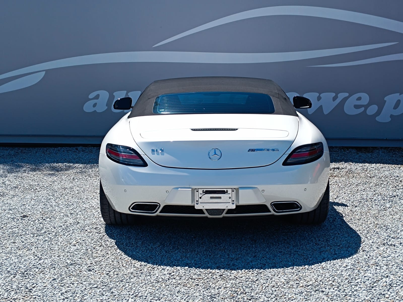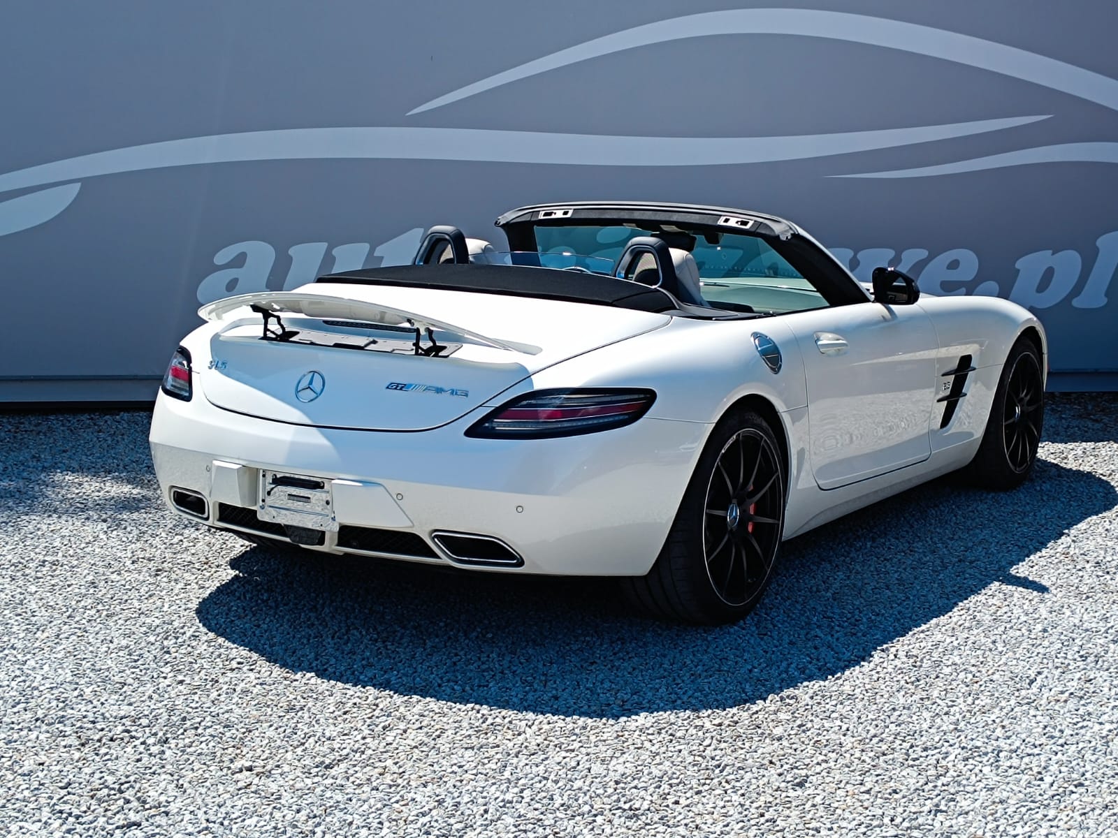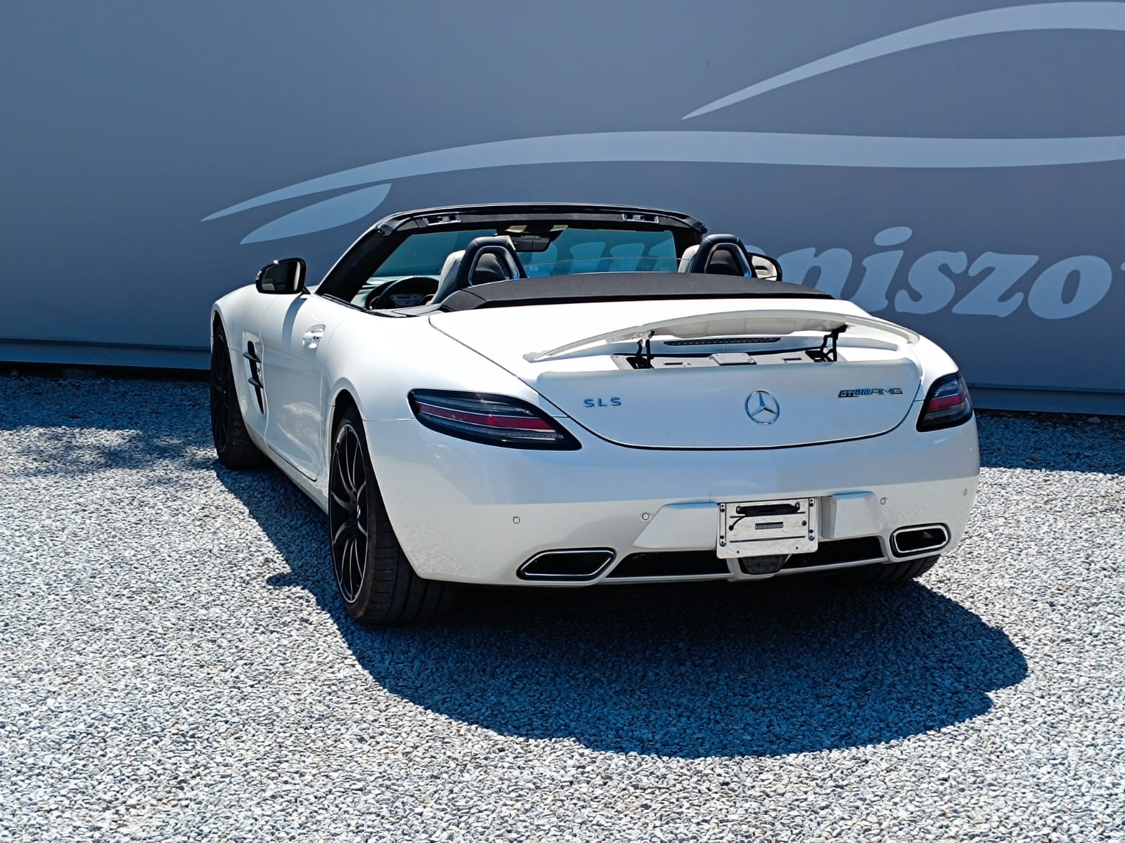 SLS został zaprezentowany po raz pierwszy we Frankfurcie w 2009 roku. Skonstruowany od podstaw przez firmę AMG, w 2012 roku doczekał się wersji Roadster. Jest niski, smukły i oszałamiająco stylowy oraz rzadki. Wyprodukowano ich zaledwie około 4000 sztuk. Jego osiągi są imponujące. Napędzany tym samym, 6,2-litrowym silnikiem V8 co coupé, w wersji GT gotowy jest zaoferować 591 KM. Ponieważ w tej wersji dach nie odizolowuje od doznań zewnętrznych, w dźwięku wydechu roadstera można usłyszeć drobne niuanse, których w coupé po prostu nie słychać. To bez wątpienia fascynujące auto.