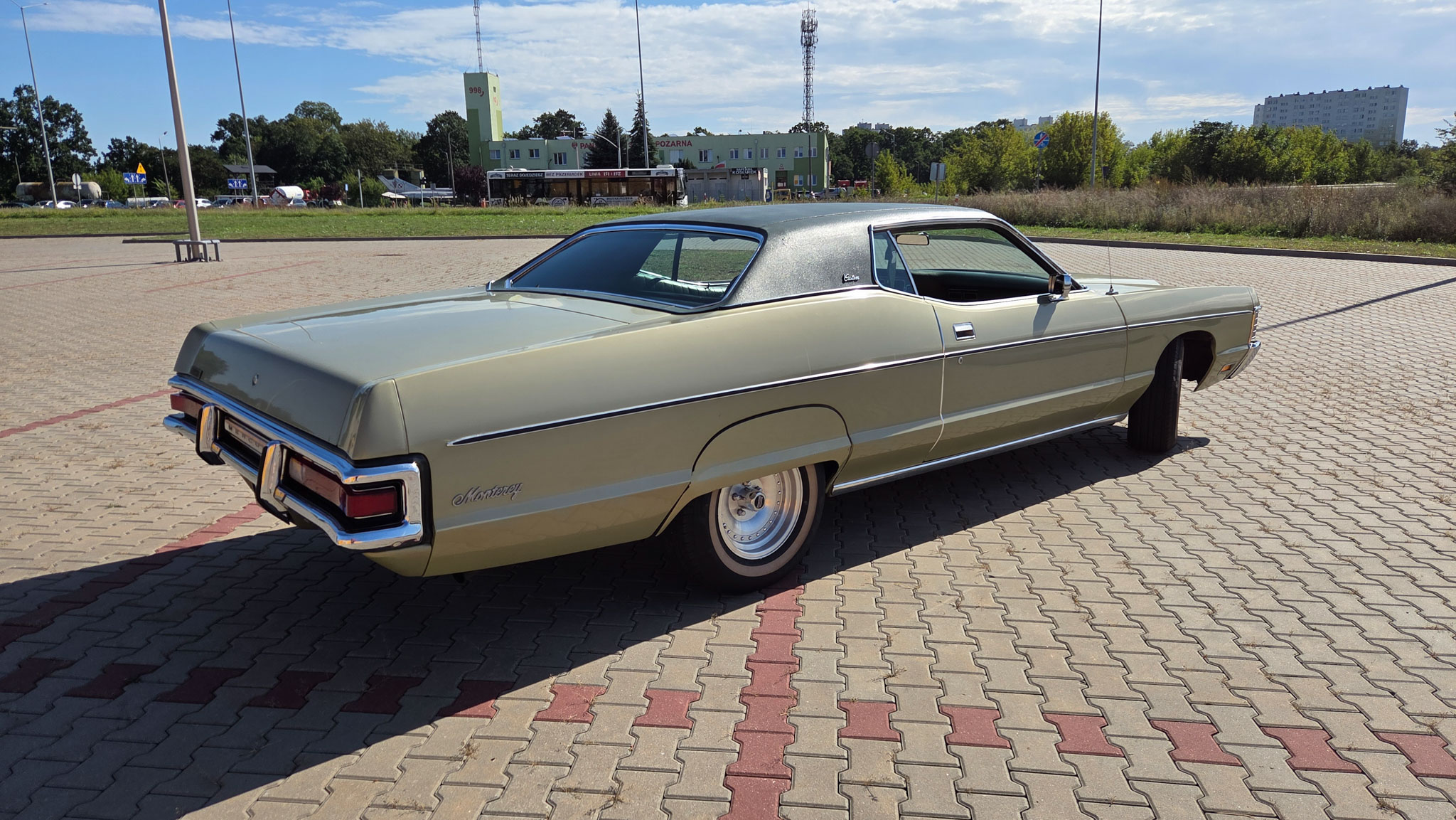 Siódma i ostatnia generacja modelu Mercury Monterey ukazywała się w latach 1969-1974. To prawdziwy amerykański krążownik klasy full size, dostępny jako limuzyna, kombi, kabriolet i oczywiście full size coupe, czyli takie, jak tu prezentowane. Jedna para drzwi i niemal 6 metrów długości robią kolosalne wrażenie do dziś. Wersja wyposażeniowa „Custom” była wówczas najwyższą dostępną w ofercie, a ten egzemplarz dodatkowo zachęca oryginalnym stanem zachowania. Pod maską dostępny był wyłącznie wybór potężnych silników w układzie V8, w kolejnych latach jedynie odprężanych ze względu na coraz bardziej śrubowane normy ekologiczne. Tu pracuje 6,6 l, czyli 400-calowy big block.