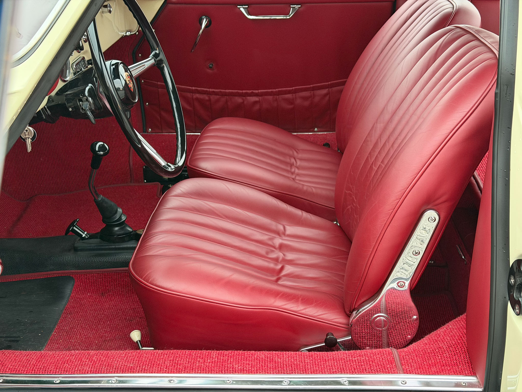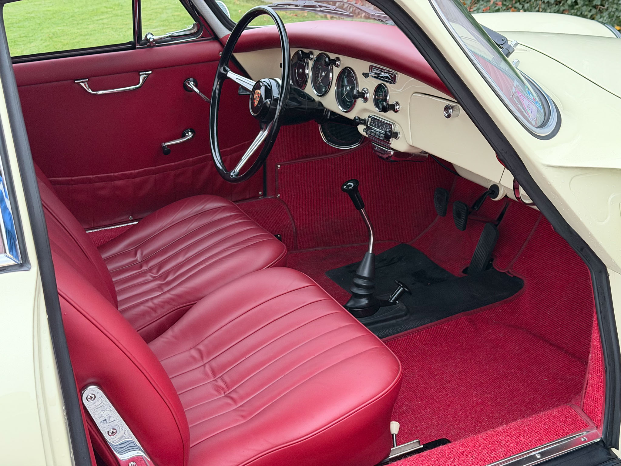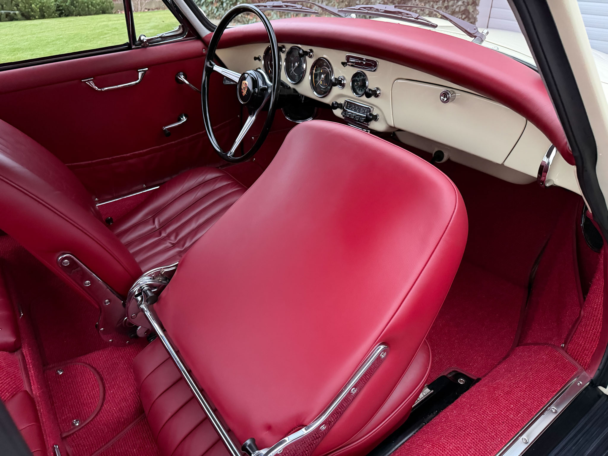 Dzieło sztuki? Eksluzywny garbus? High Tech lat 50-tych? Jest wiele określeń, które będą pasować do Porsche 356. To co pewne to jego niesamowita charyzma, frajda z jazdy połączona z lekkością prowadzenia i ponadczasowa estetyka. Szokujące jest też jak to dobrze jeździ mając silnik bokser 1,6 l na dwóch gaźnikach o mocy 60 KM. Niska masa (900 kg) i genialna konstrukcja robią swoje. Ten egzemplarz ma oryginalny silnik, kolor nadwozia i wnętrza. Został w pełni odrestaurowany 10 lat temu i od tego czasu używany był sporadycznie, przejeżdżając tylko 2500 mil.