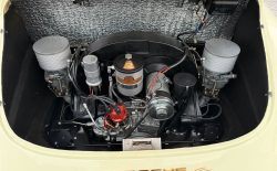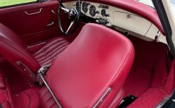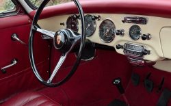 Dzieło sztuki? Eksluzywny garbus? High Tech lat 50.? Jest wiele określeń, które będą pasować do Porsche 356. To co pewne to jego niesamowita charyzma, frajda z jazdy połączona z lekkością prowadzenia i ponadczasowa estetyka. Szokujące jest też jak to dobrze jeździ mając silnik bokser 1,6 l na dwóch gaźnikach o mocy 60 KM. Niska masa (900 kg) i genialna konstrukcja robią swoje. Ten egzemplarz ma oryginalny silnik, kolor nadwozia i wnętrza. Został w pełni odrestaurowany 10 lat temu i od tego czasu używany był sporadycznie, przejeżdżając tylko 2500 mil.