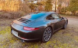 Porsche 911 Carrera S model 991. Silnik 3.8 400 KM. Auto, które od lat jest symbolem kultu i na pewno u każdego fana motoryzacji wzbudza emocje. Na pewno każdy chciał się kiedyś takim przejechać. Miałem to samo. Jednak ten, kto raz się tym autem przejedzie, od razu chce go po prostu mieć dla siebie. To nie jest BMW „M-ka” , Mercedes AMG czy inne tego typu cywilne auto, do którego napakowano koni mechanicznych pod maskę. Są naprawdę szybkie i dają dużo frajdy z jazdy, ale Porsche 911 jest po prostu zajebiste. To jest prawdziwie sportowy wóz na tor wyścigowy, który trochę przystosowano do jazdy po ulicach. Sportowo zestrojone zawieszenie nawet w normalnym trybie pracy sprawia, że trakcja jest po prostu rewelacyjna. W dodatku mieszczę się w nim bez problemu przy moich 2 metrach wzrostu.