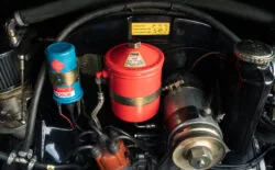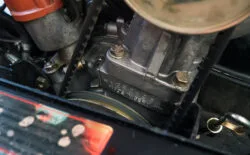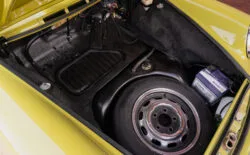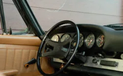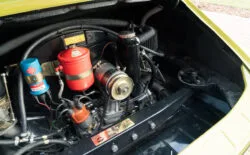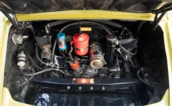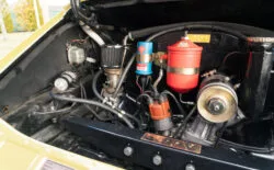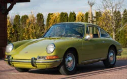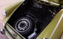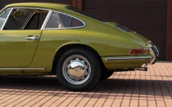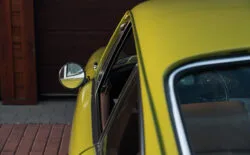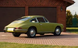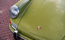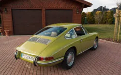 Porsche 912 dzieli z klasyczną 911-tką przepiękną karoserię, będącą jednym a najbardziej charakterystycznych kształtów w historii motoryzacji. Od swojego większego brata odróżnia go mniejszy, czterocylindrowy silnik, również chłodzony powietrzem, typu boxer. Choć mocy oferuje nieco mniej, jest lżejszy i chętnie wkręca się na obroty, co poprawia charakterystykę prowadzenia i wpisuje się w zadziorny, sportowy charakter samochodu. Fenomenalny jest kolor tego odrestaurowanego egzemplarza, „golden green”, pochodzący z palety lakierów specjalnych, dostępny na zamówienie i niezwykle rzadko spotykany.