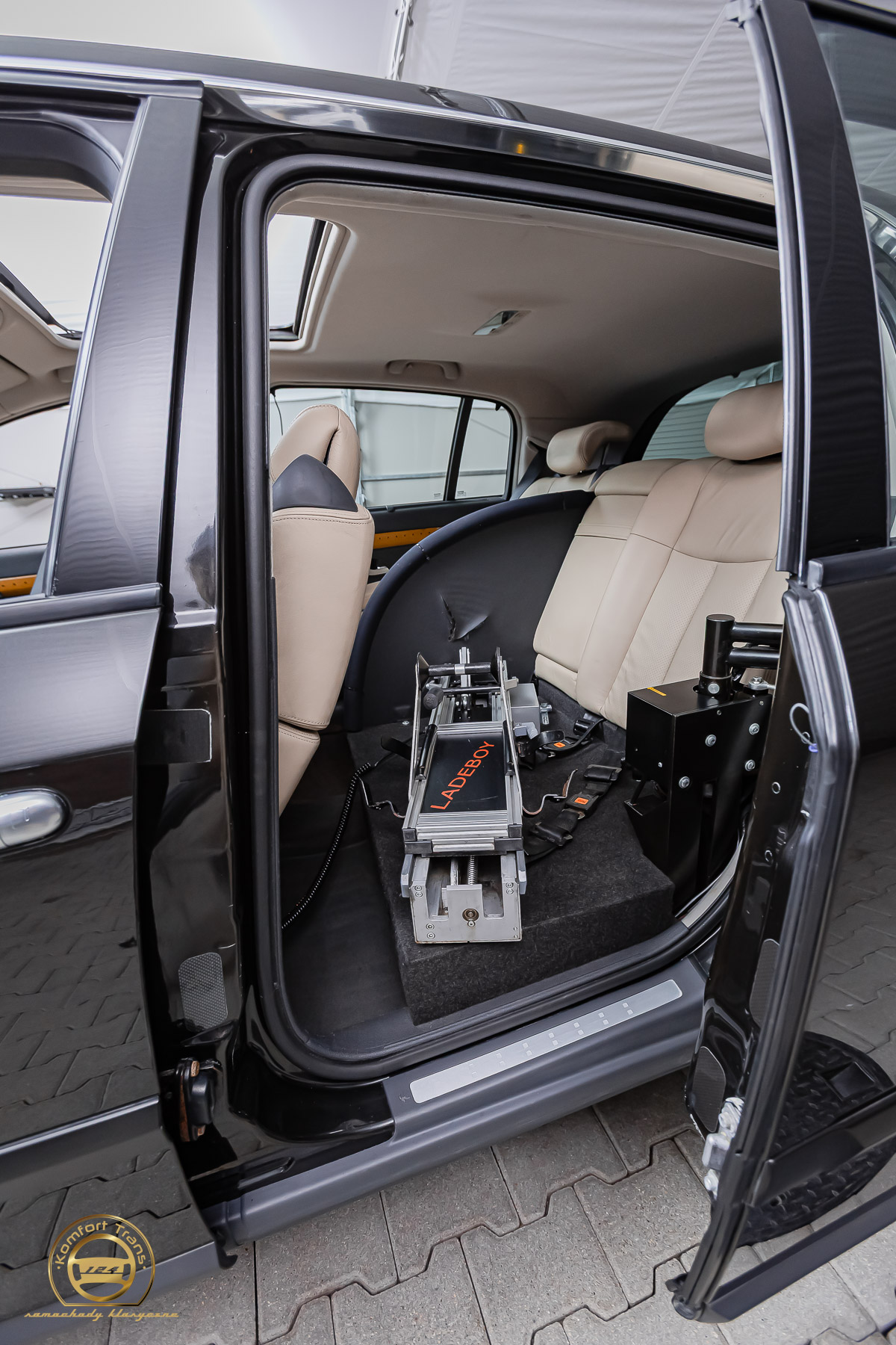 Przystosowany do prowadzenia przez osobę niepełnosprawną – jednostka sterująca gaz i hamulec „Veigel Classic I” + Joystick wielofunkcyjny + system załadunku wózka LADEBOY.