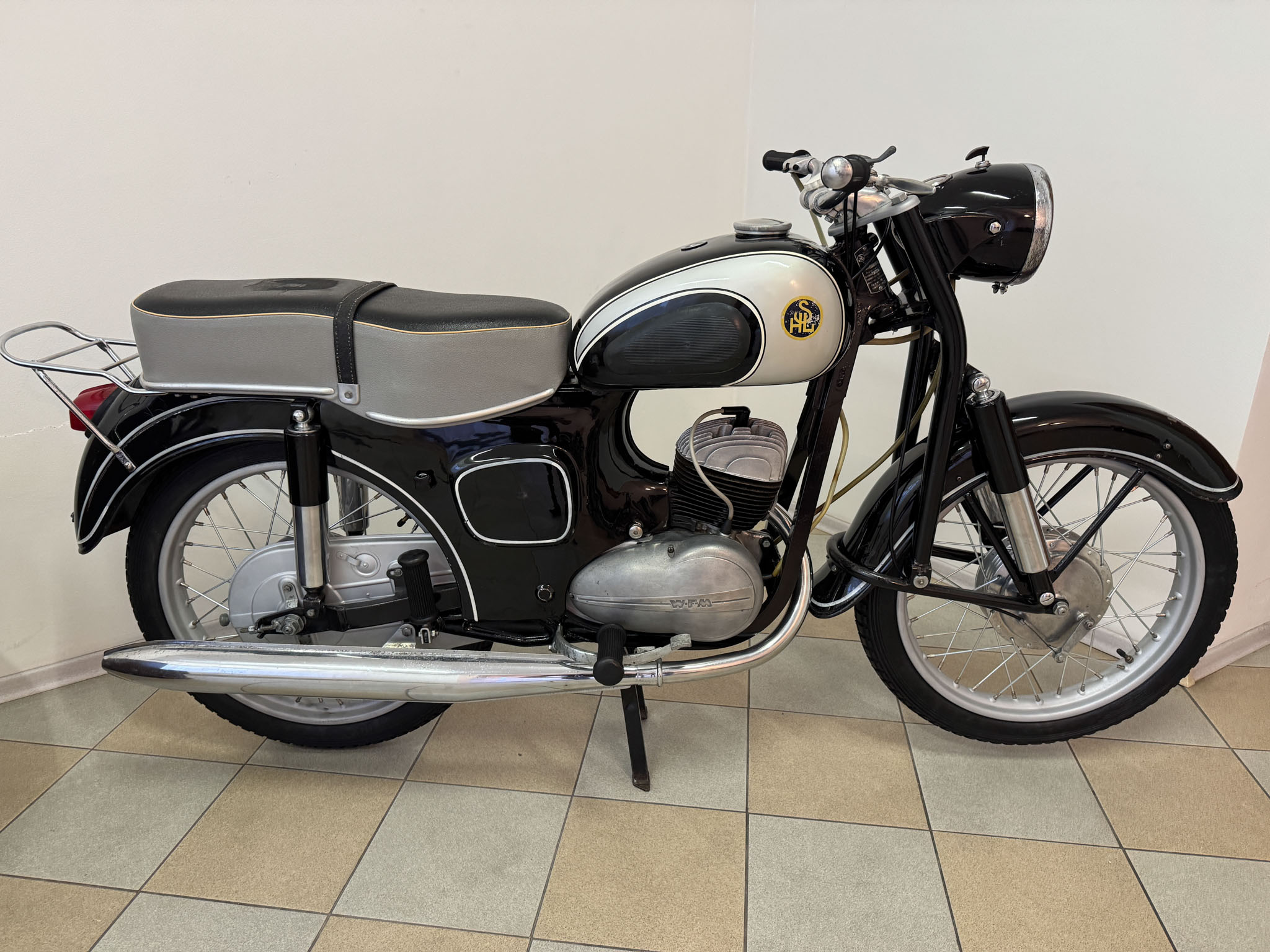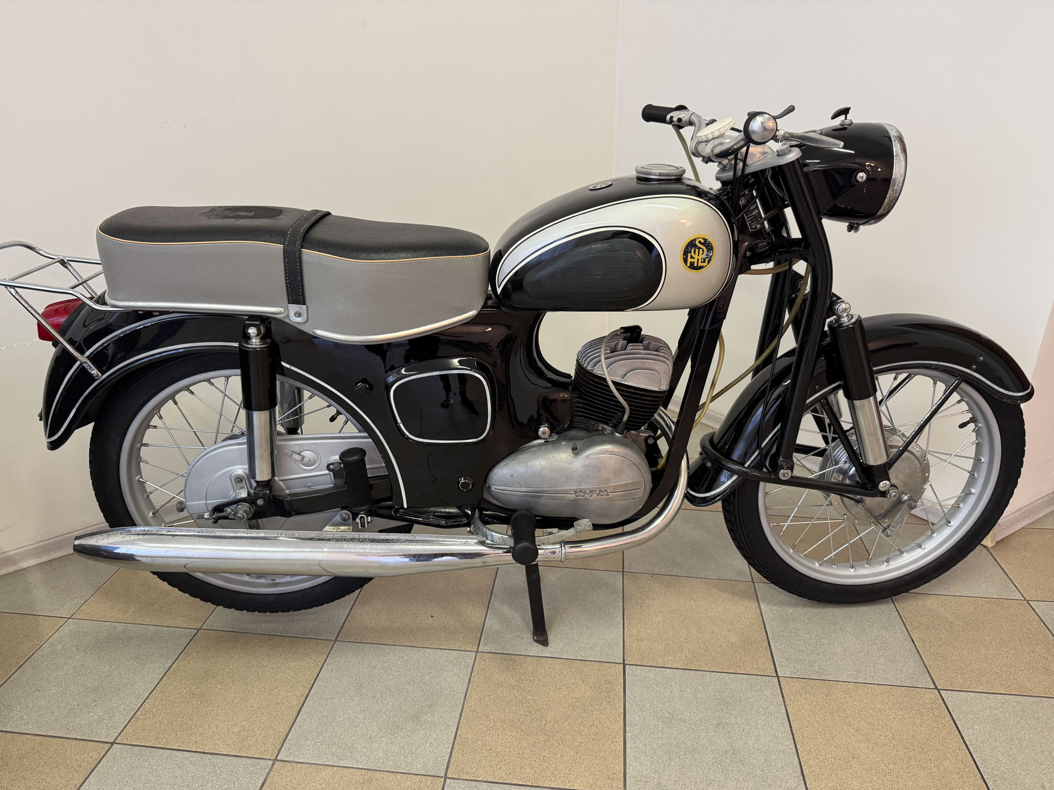 SHL M11 to pierwszy polski motocykl klasy 175. Produkowany w Kielcach, początkowo z warszawskim silnikiem M32, jest przedstawicielem okresu, w którym nie wszystkie polskie motocykle wyjeżdżały z WSK w Świdniku. W latach 1961-67 wyprodukowano 152020 egzemplarzy tego modelu M11, ale egzemplarz drugi jak ten jest po prostu nie do znalezienia. Ten motocykl pochodzi z pierwszego roku produkcji i jest po prostu nieużywany, zachowany w fabrycznym stanie i zakonserwowany. To ewenement. Motocykl oferowany jest wraz z oryginalnym akumulatorem, który nigdy nie został zalany, jest fabryczne pudełko SHL z zestawem naprawczym i nieużywane, fabryczne narzędzia. Motocykl jest w pełni oryginalny, nigdy nie był restaurowany. Śladów działania czasu możemy dopatrzeć się jedynie na drobnych przetarciach na zbiorniku paliwa, lecz ktokolwiek pamięta, jakiej jakości były powłoki bazujące na miękkich lakierach nitro, nie będzie się temu dziwić.
