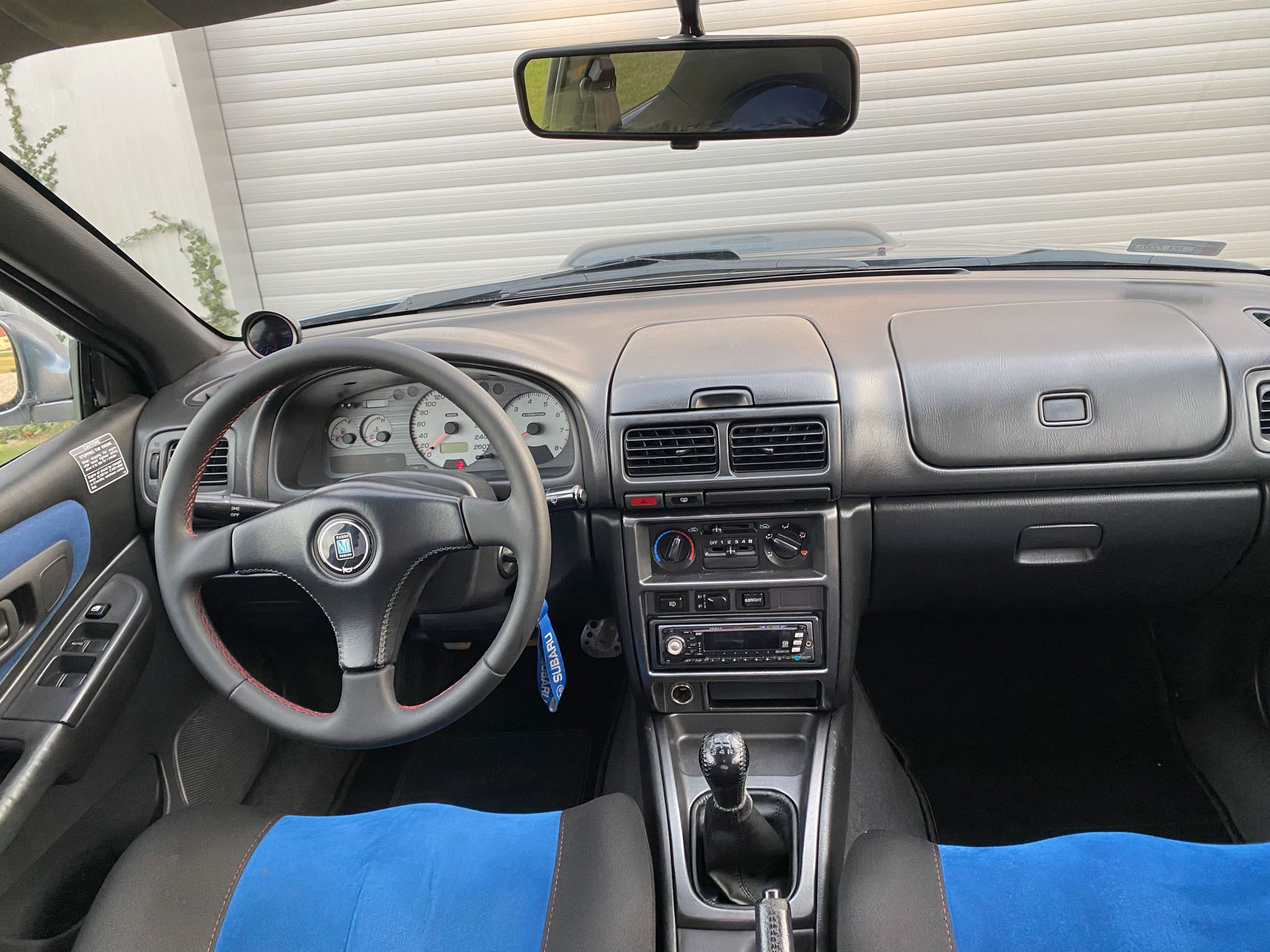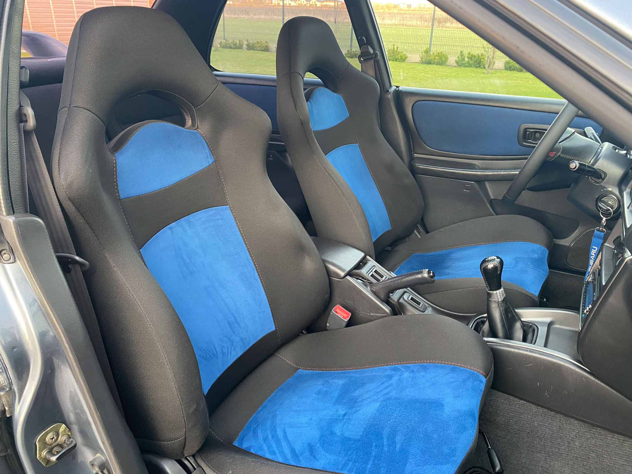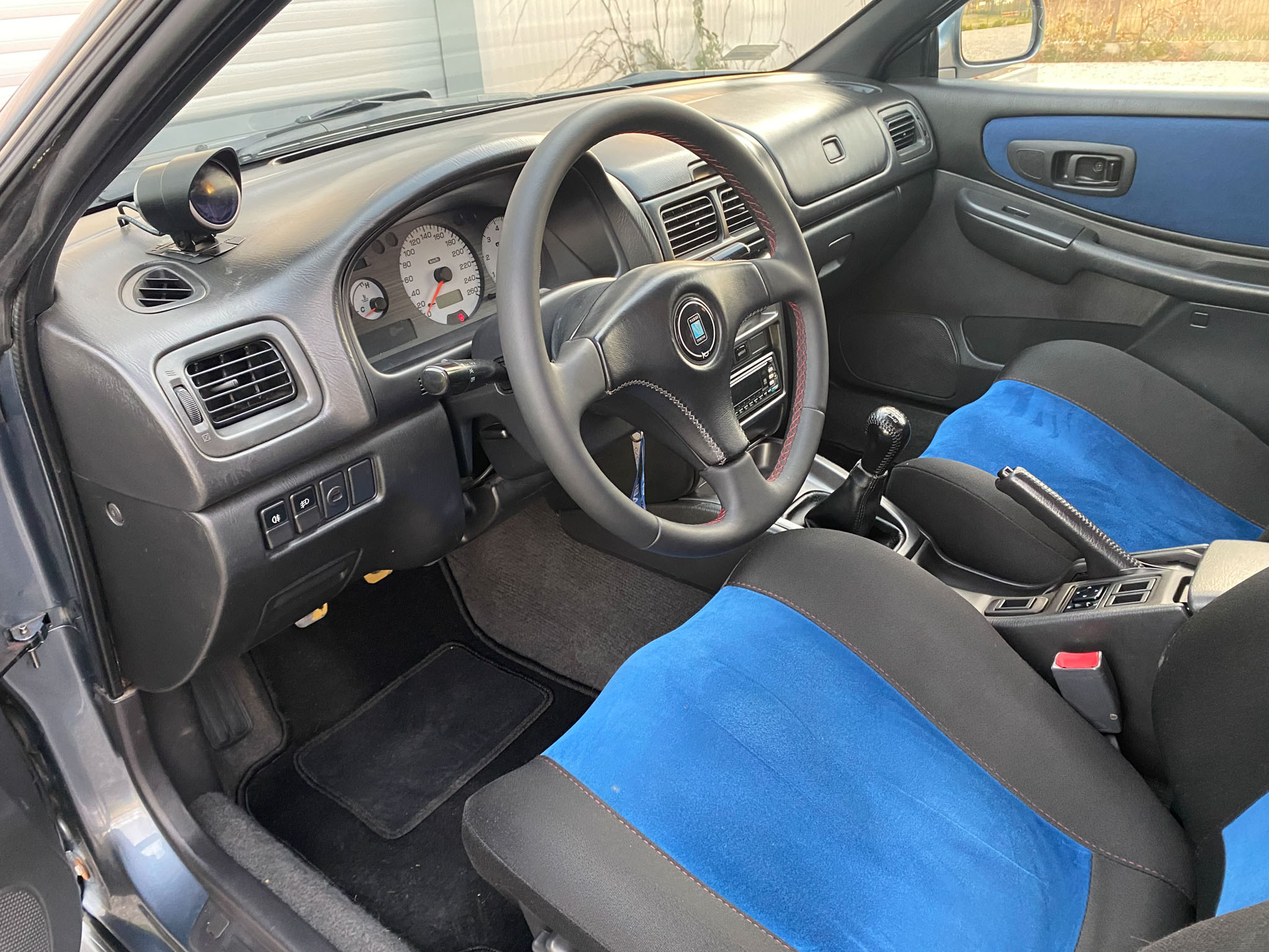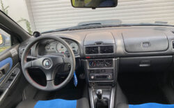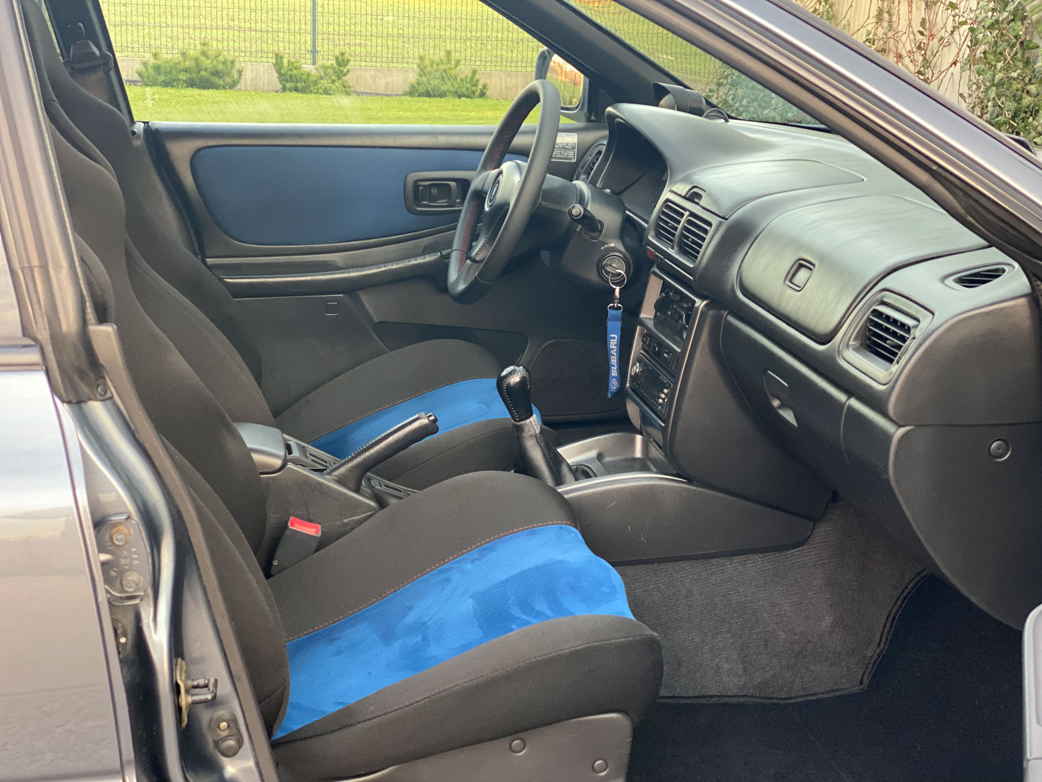 Subaru Impreza GT 25 Stars z 1999 roku z przebiegiem 128.000 km. Długo szukałem egzemplarza z tak małym i w miarę potwierdzonym przebiegiem. Powstało zaledwie 160 tej limitowanej wersji wypuszczonej na rynek dla uczczenia 25 lat obecności Subaru w Holandii. 25 Stars to mix wersji Nardi Torino (absolutny brak czegokolwiek poza elektryką szyb i centralnym zamkiem) z elementami wnętrza pochodzącymi z ulubionej przez wszystkich 22B – niebieskie wstawki tapicerki i czerwona nić. Dodatkowo auto posiada złoty znaczek i felgi. W kolorze stalowym powstało 120 szt., w kolorze czarnym – 40.