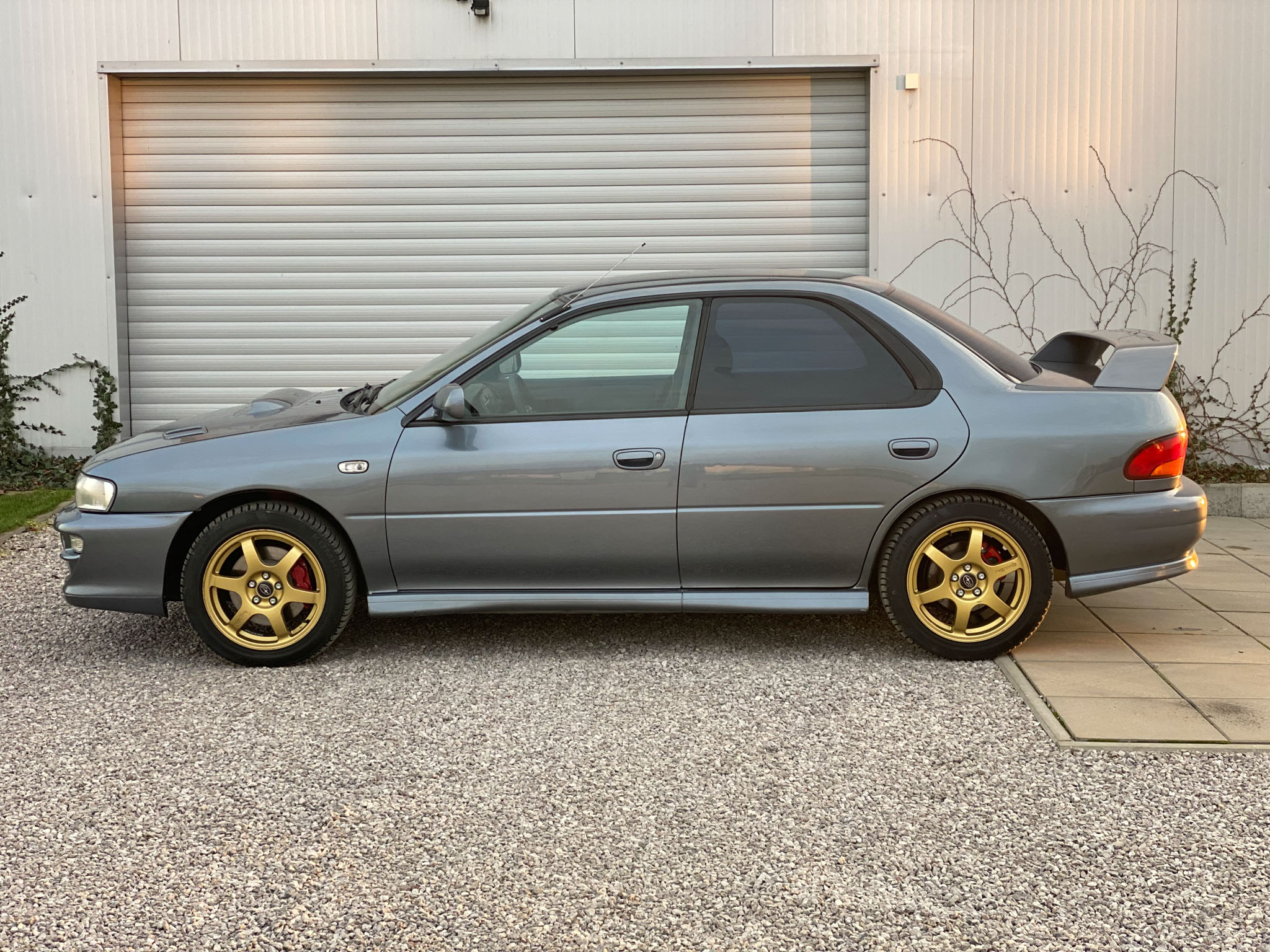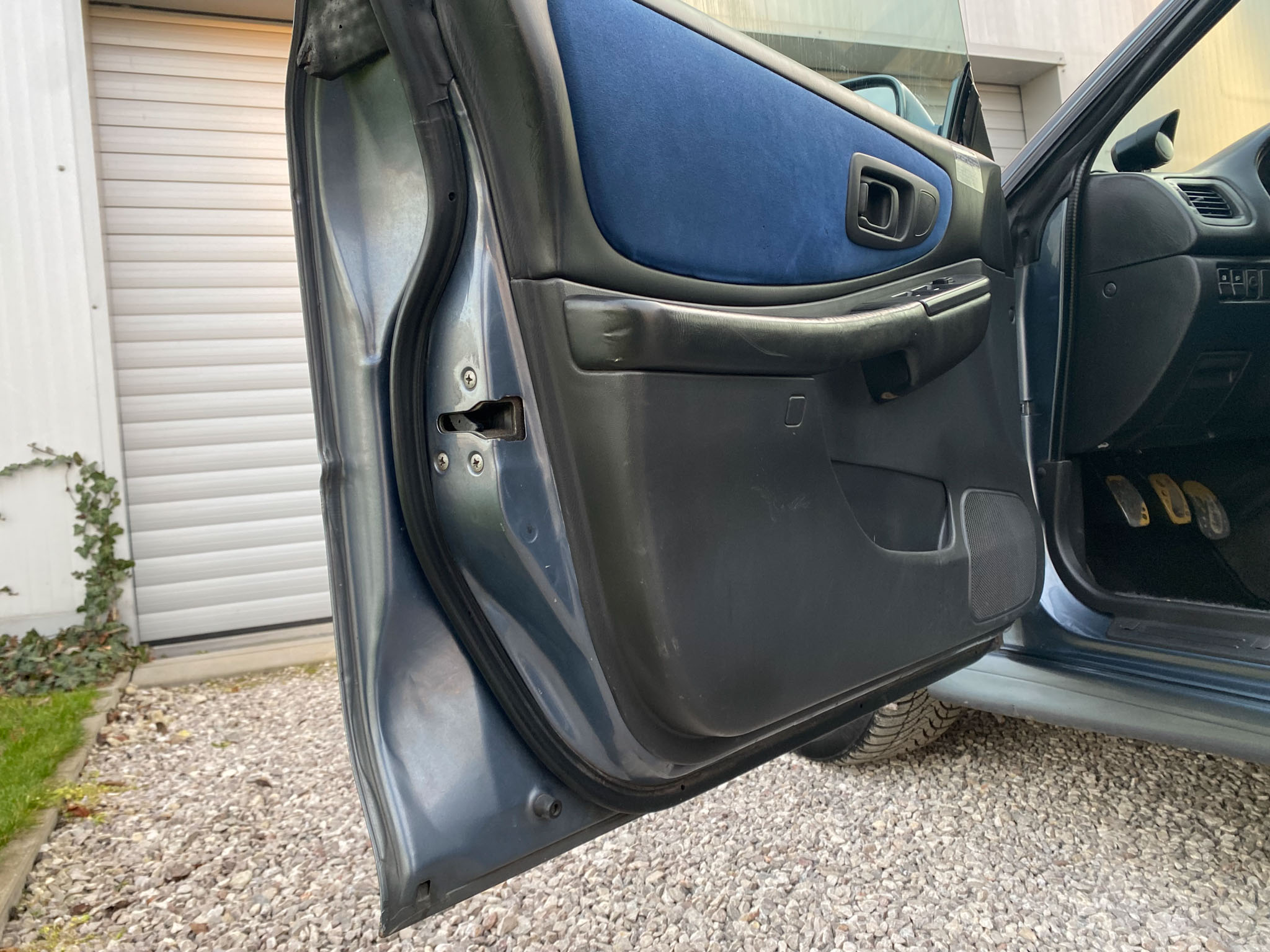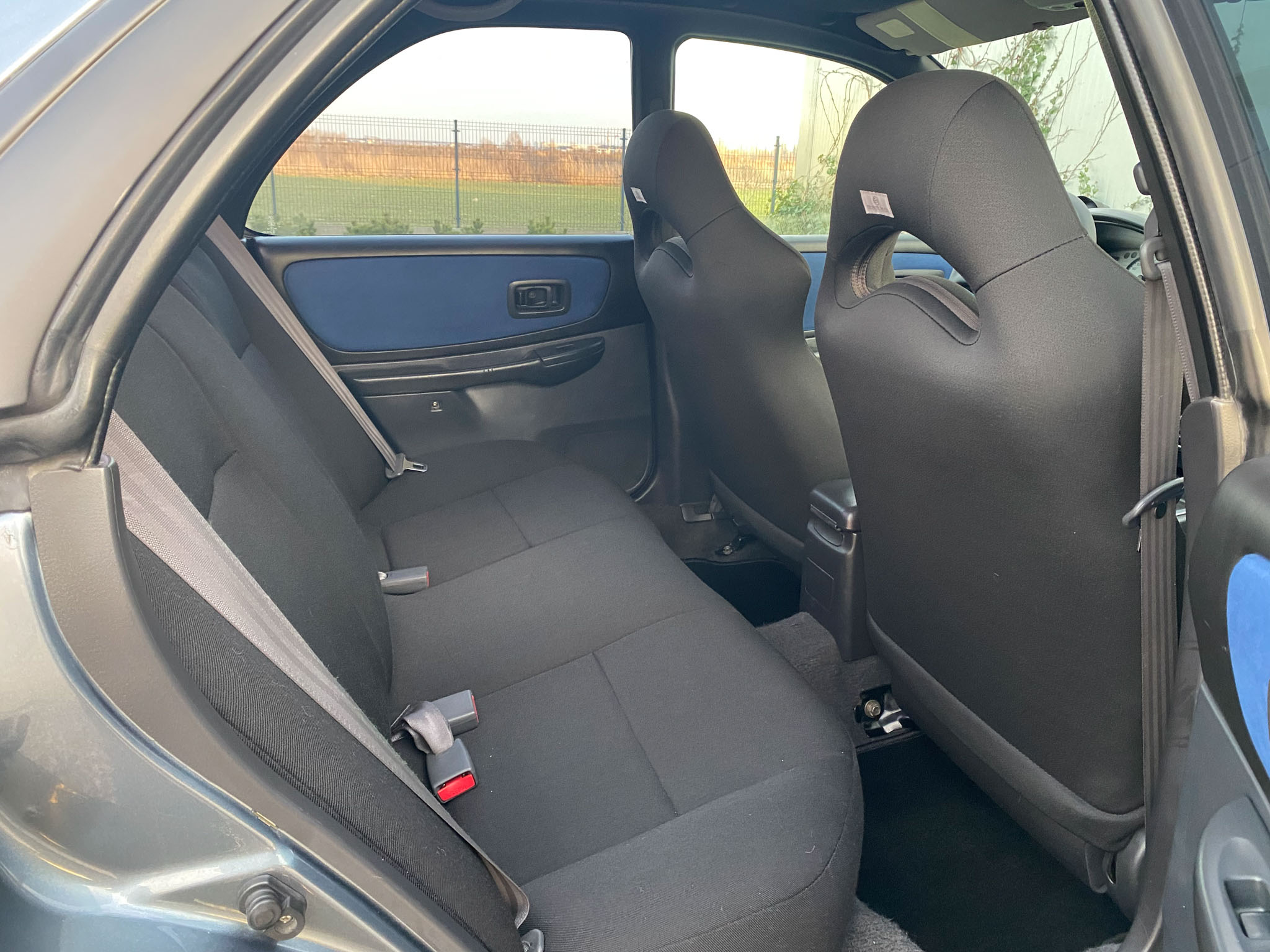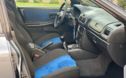 Subaru Impreza GT 25 Stars z 1999 roku z przebiegiem 128.000 km. Długo szukałem egzemplarza z tak małym i w miarę potwierdzonym przebiegiem. Powstało zaledwie 160 tej limitowanej wersji wypuszczonej na rynek dla uczczenia 25 lat obecności Subaru w Holandii. 25 Stars to mix wersji Nardi Torino (absolutny brak czegokolwiek poza elektryką szyb i centralnym zamkiem) z elementami wnętrza pochodzącymi z ulubionej przez wszystkich 22B – niebieskie wstawki tapicerki i czerwona nić. Dodatkowo auto posiada złoty znaczek i felgi. W kolorze stalowym powstało 120 szt., w kolorze czarnym – 40.