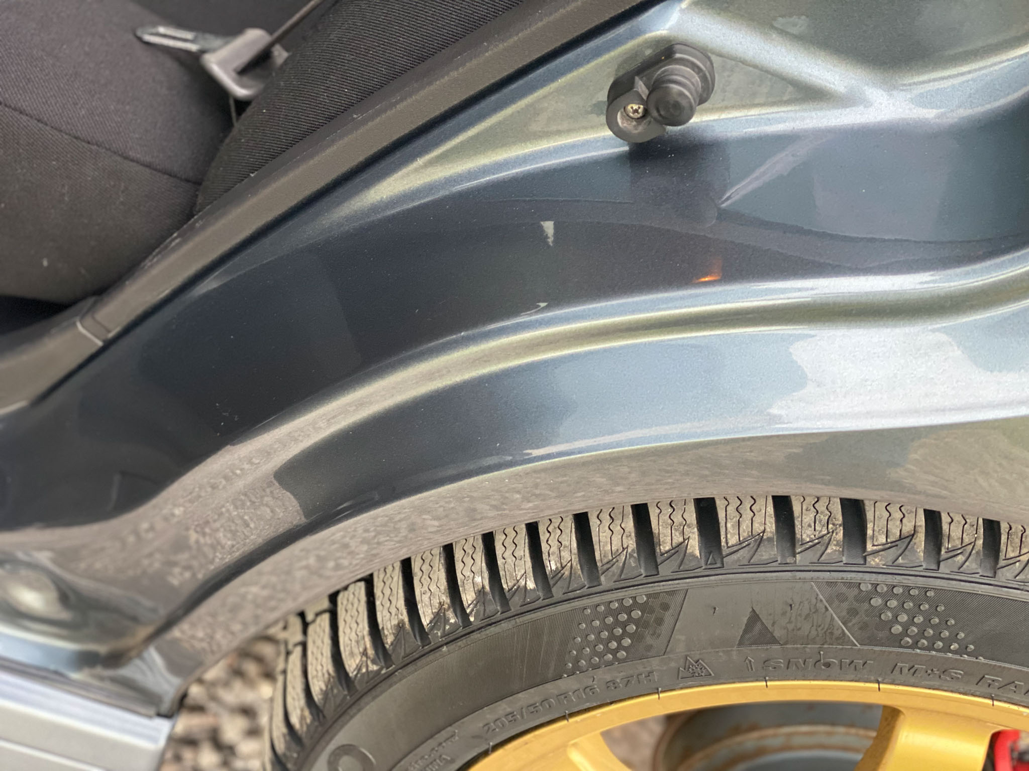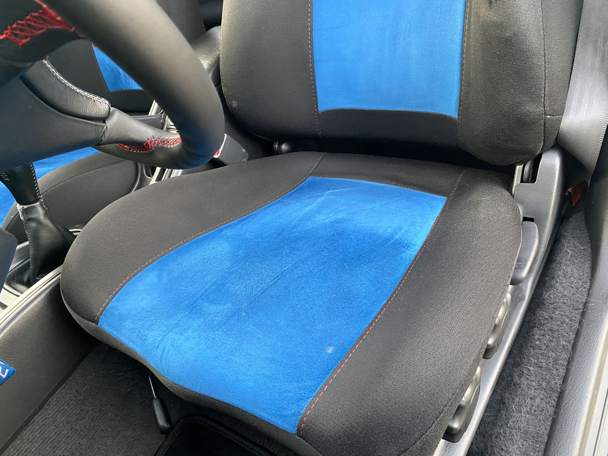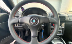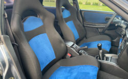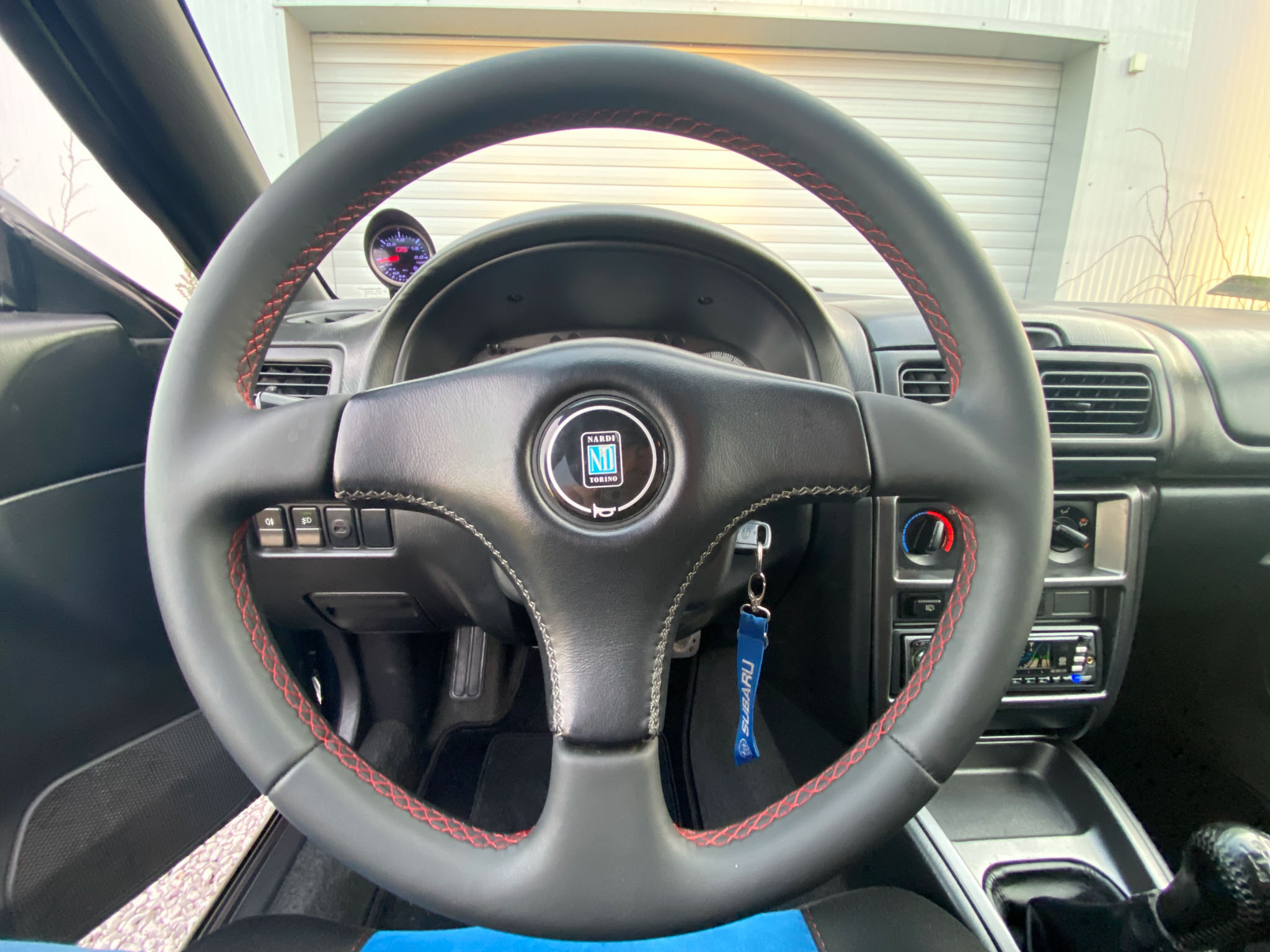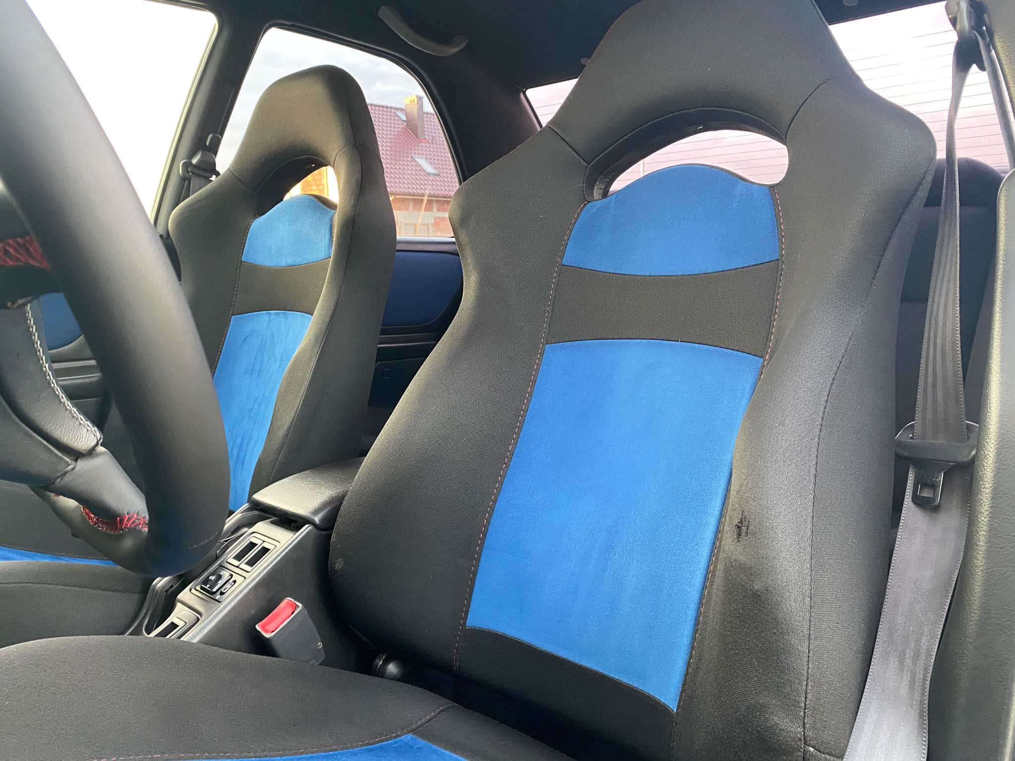 Subaru Impreza GT 25 Stars z 1999 roku z przebiegiem 128.000 km. Długo szukałem egzemplarza z tak małym i w miarę potwierdzonym przebiegiem. Powstało zaledwie 160 tej limitowanej wersji wypuszczonej na rynek dla uczczenia 25 lat obecności Subaru w Holandii. 25 Stars to mix wersji Nardi Torino (absolutny brak czegokolwiek poza elektryką szyb i centralnym zamkiem) z elementami wnętrza pochodzącymi z ulubionej przez wszystkich 22B – niebieskie wstawki tapicerki i czerwona nić. Dodatkowo auto posiada złoty znaczek i felgi. W kolorze stalowym powstało 120 szt., w kolorze czarnym – 40.