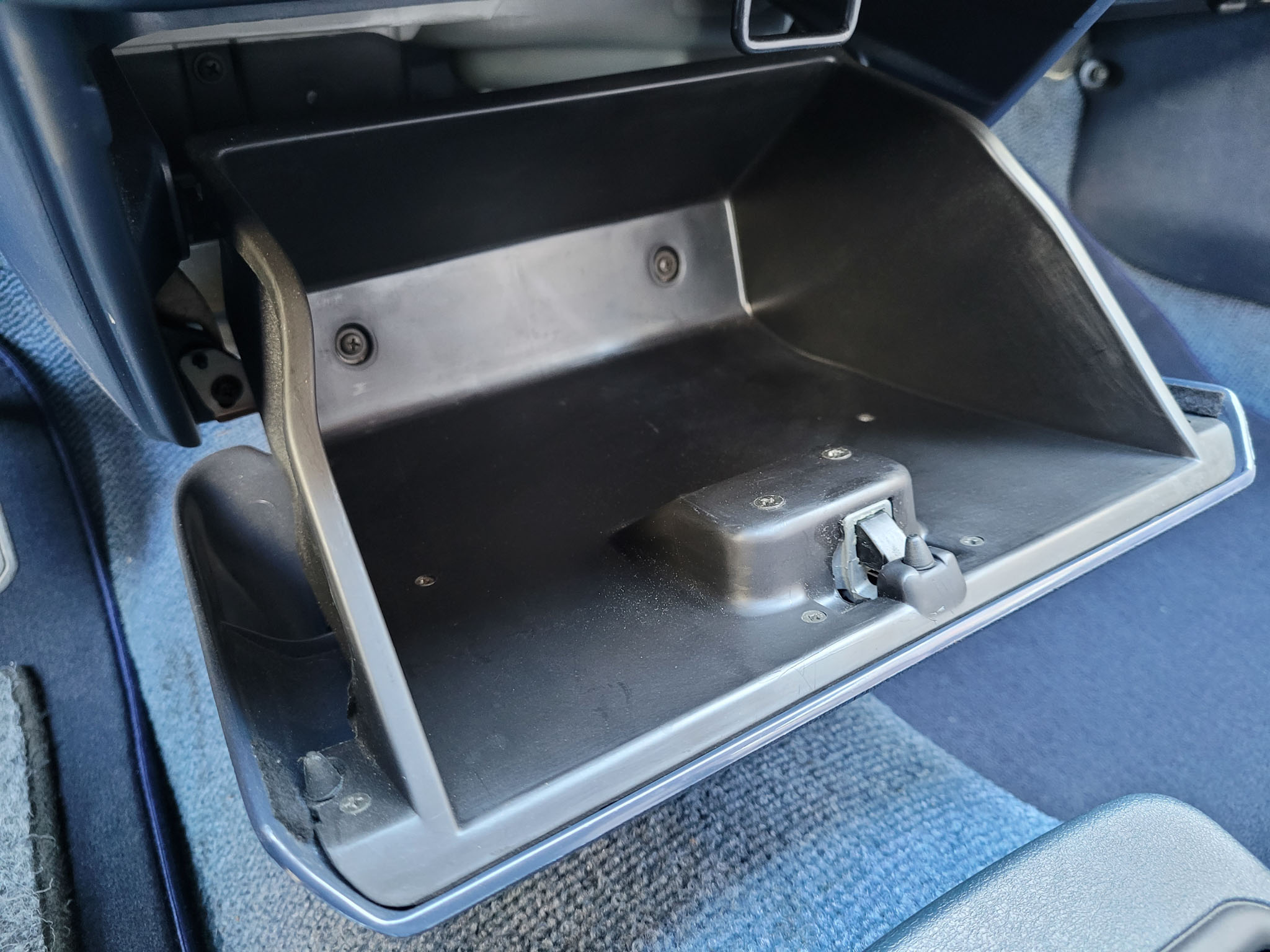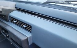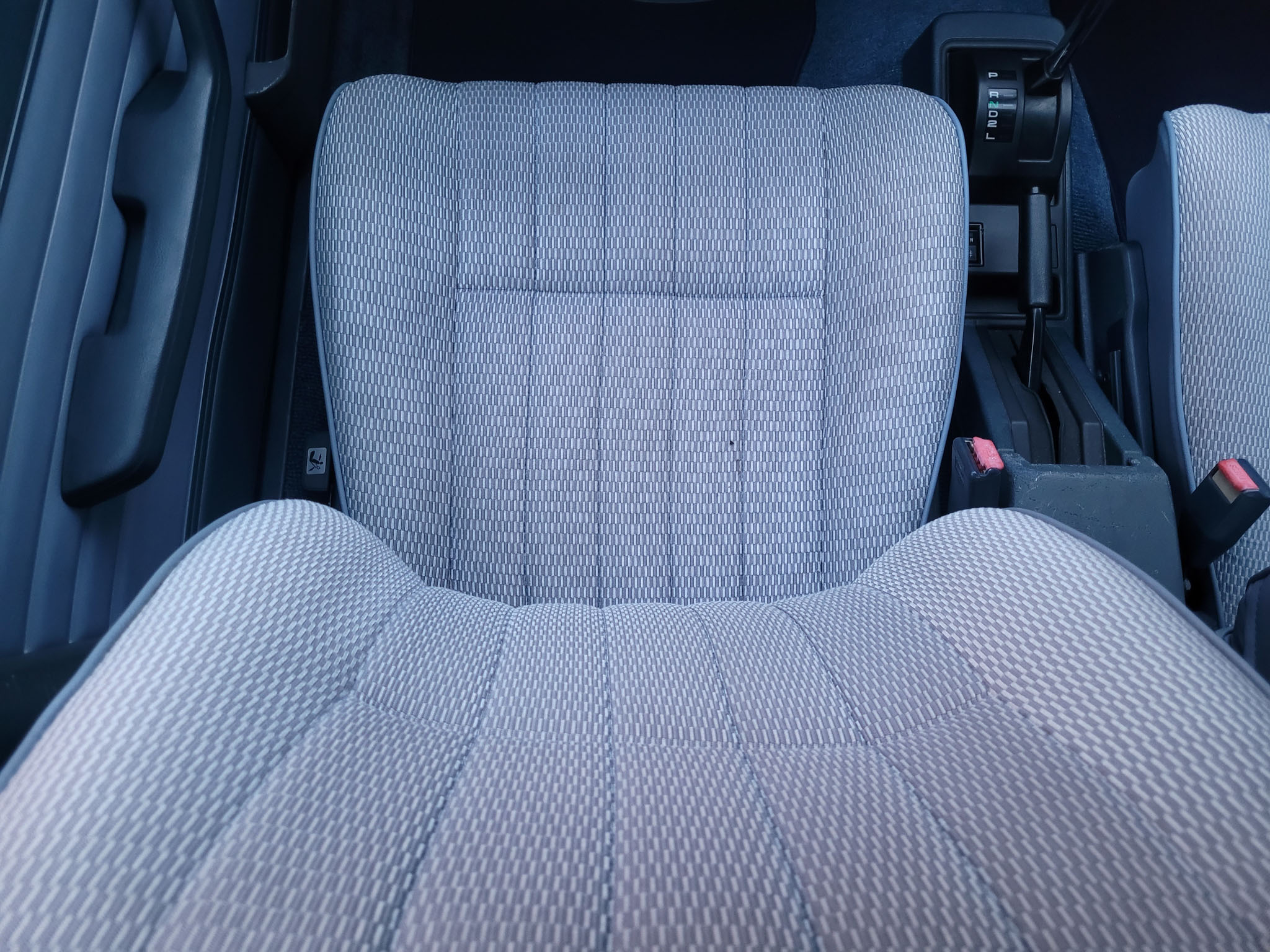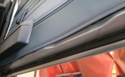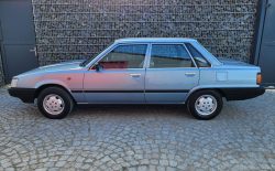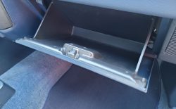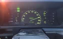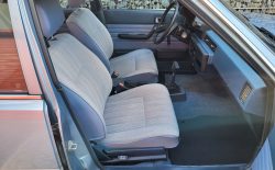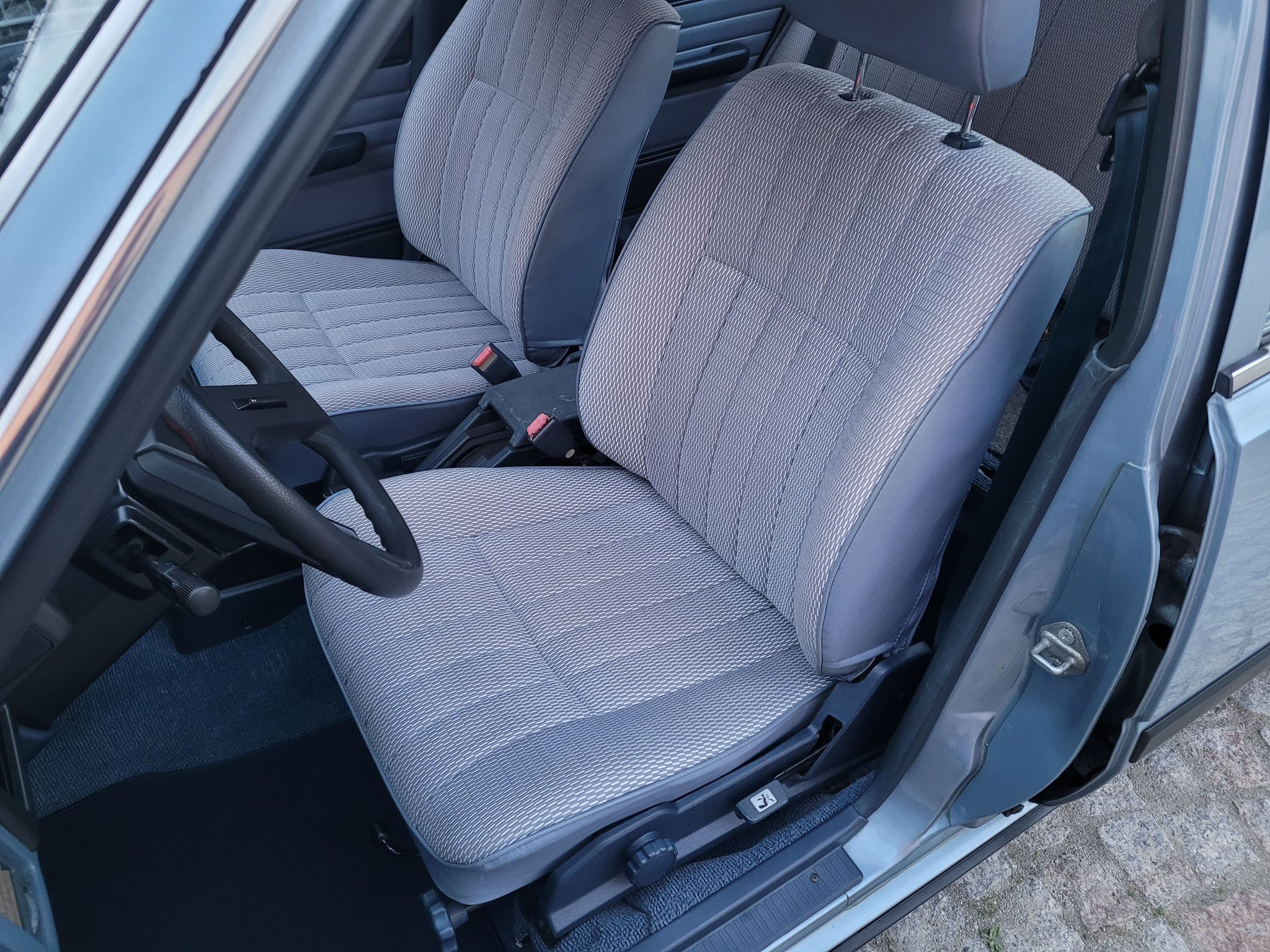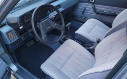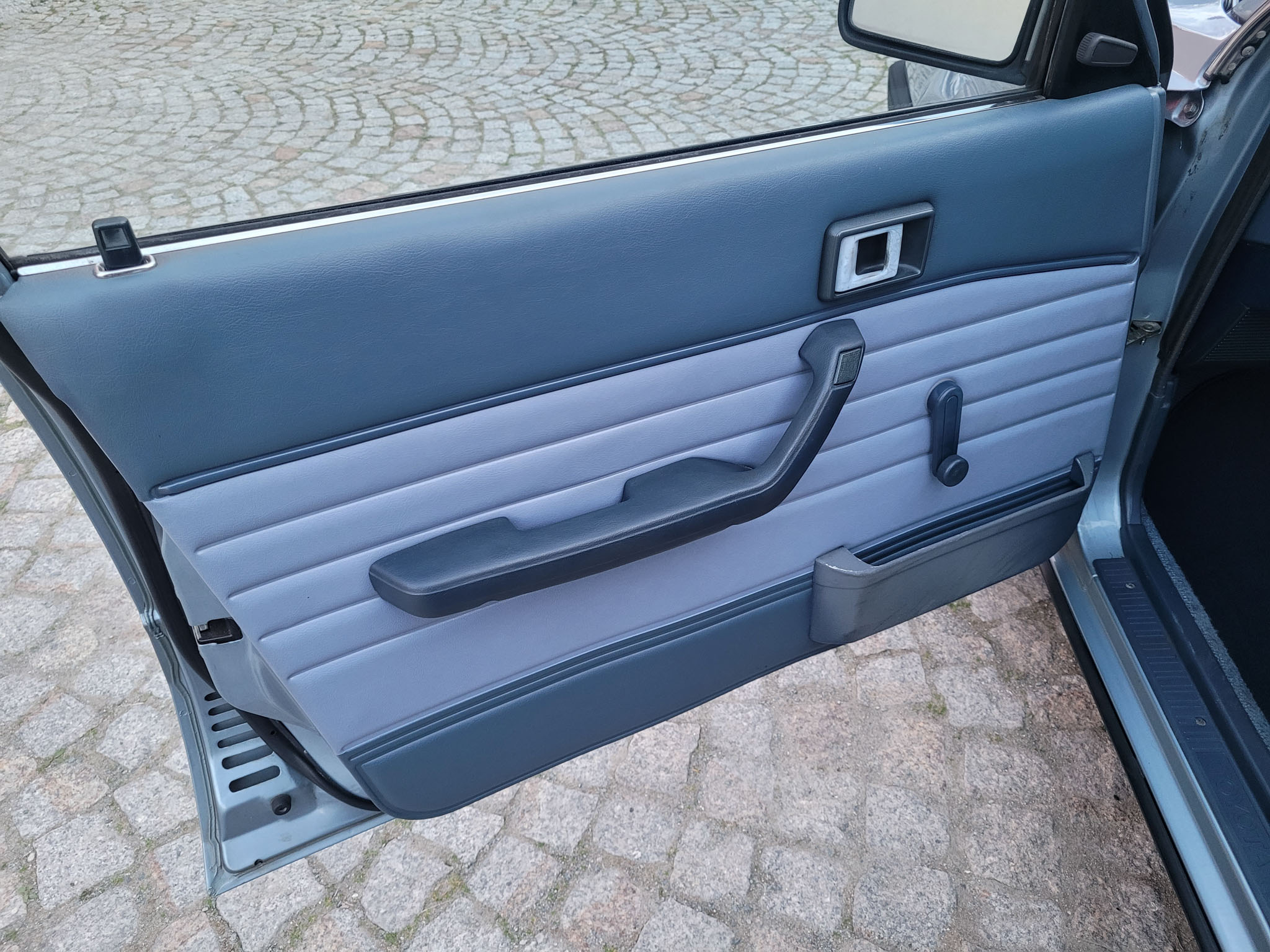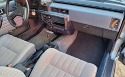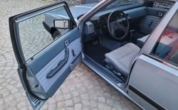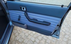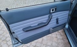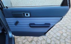 Wnętrze zachowane w bardzo dobrym stanie. Nowe dywaniki welurowe szyte na miarę. Plastiki matowe bez rys czy pęknięć. Podsufitka nie rozkleja się. Fabryczna zaślepka na radio przetrwała do dziś. Zapalniczka dziewicza. Z wad – pokrywa schowka w konsoli środkowej delikatnie się kruszy, brak osłonki podświetlenia wewnętrznego na podsufitce.