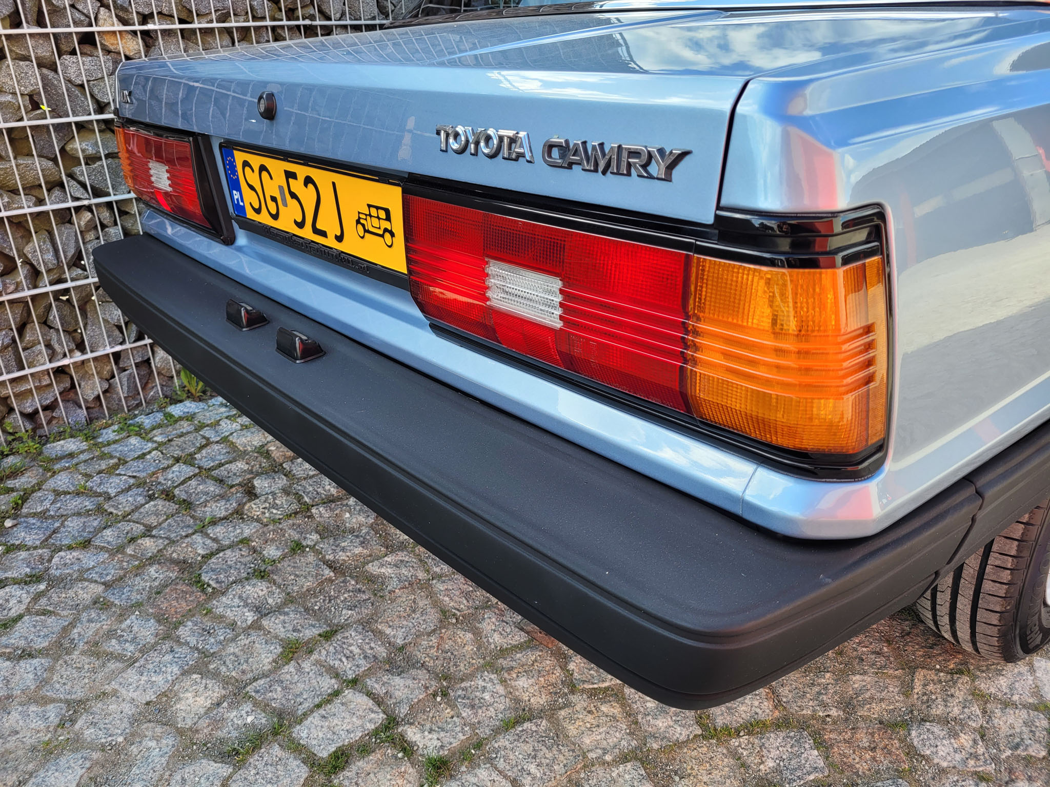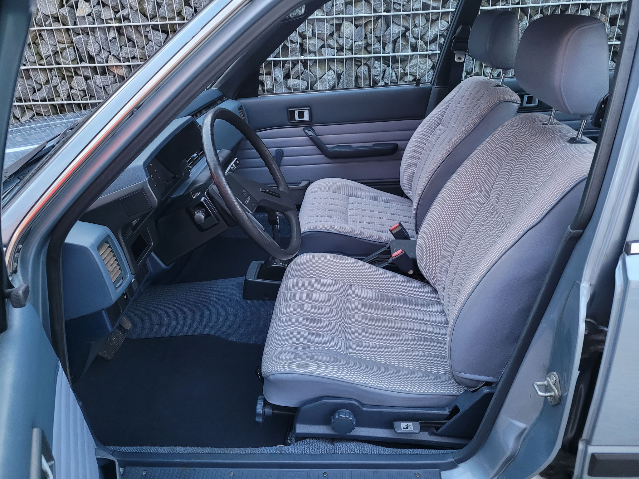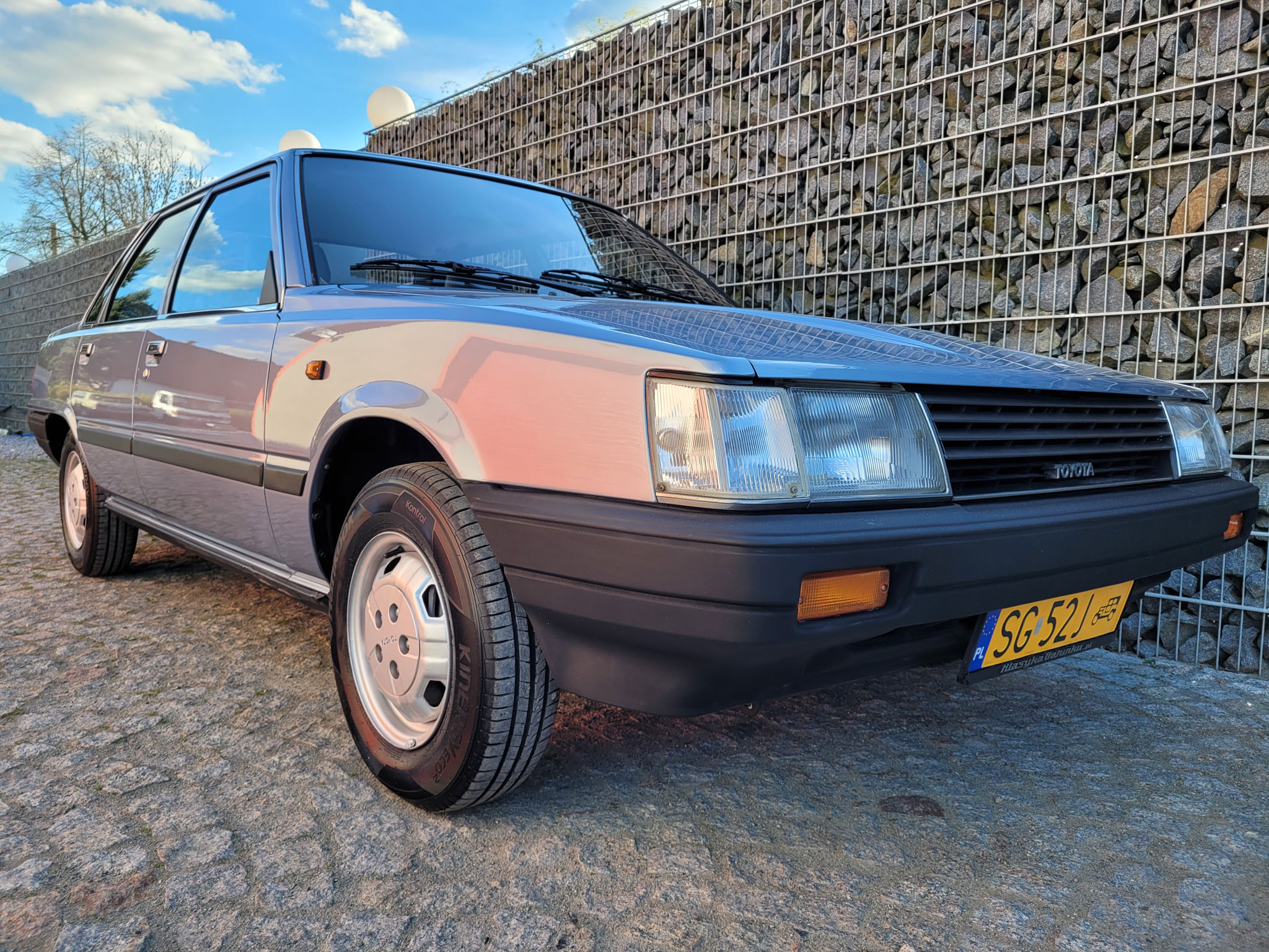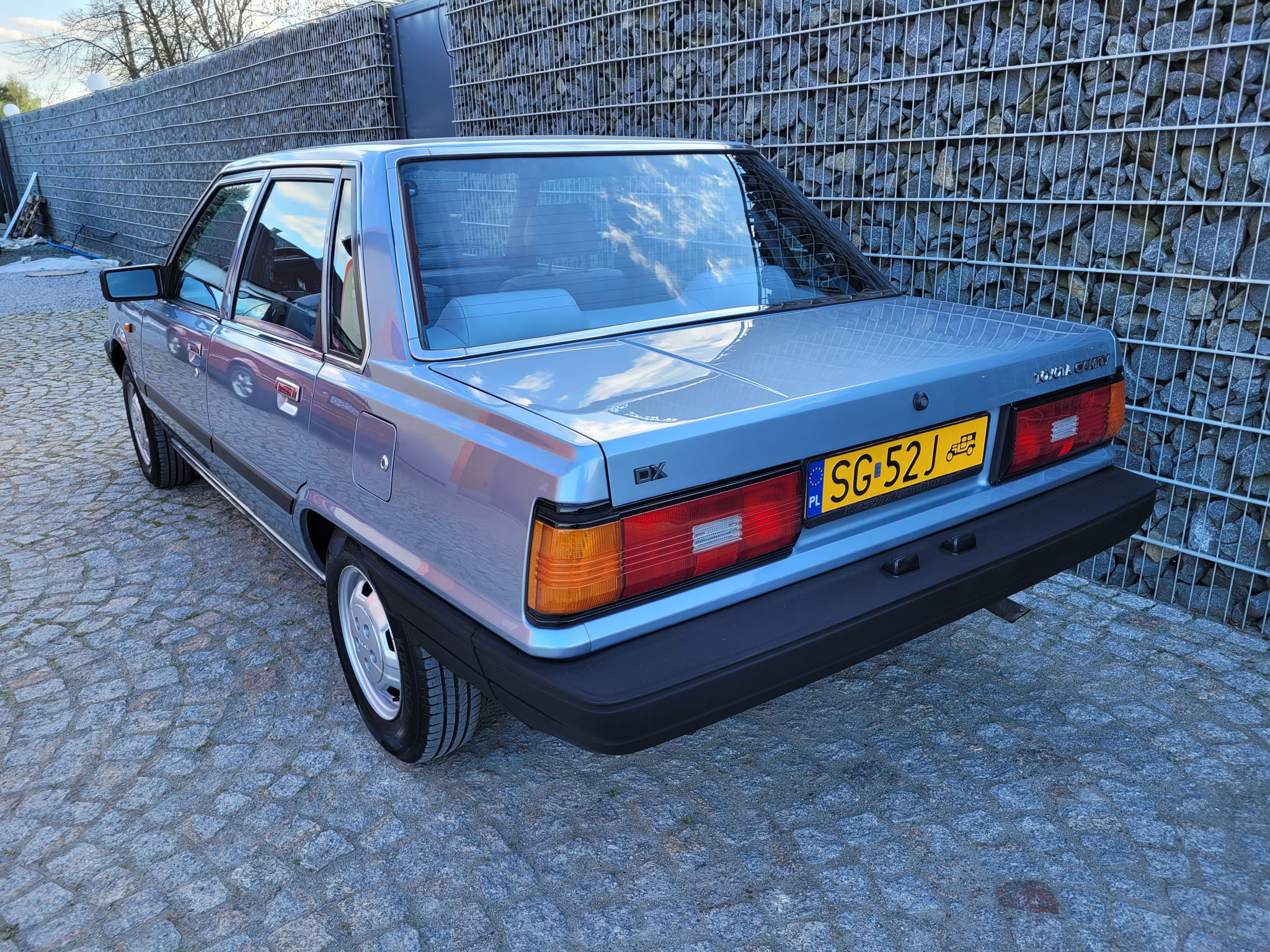Przedmiotem sprzedaży jest 43-letnia Toyota Camry pierwszej generacji w kolorze błękitnym z szarą tapicerką. Sprowadzona z Neunkirchen, Niemcy od pierwszego właściciela (Pan ur. 1905 r.), który – gdyby żył – miałby w tym roku 121 lat. Zdjęcie dowodu z datą urodzenia właściciela w galerii. Jak łatwo obliczyć, Pan kupił samochód w wieku 78 lat i przejechał jedynie 32 tysiące kilometrów. Po jego śmierci samochód stał 20 lat zapomniany w garażu. Podczas wyciągania samochodu posiadał on jeszcze fabryczne opony. Auto jak na swój wiek zachowane jest w perfekcyjnym stanie z minimalnymi śladami użytkowania oraz upływu czasu. Przetrwały do dnia dzisiejszego 3 oryginalne klucze Toyota.