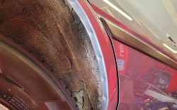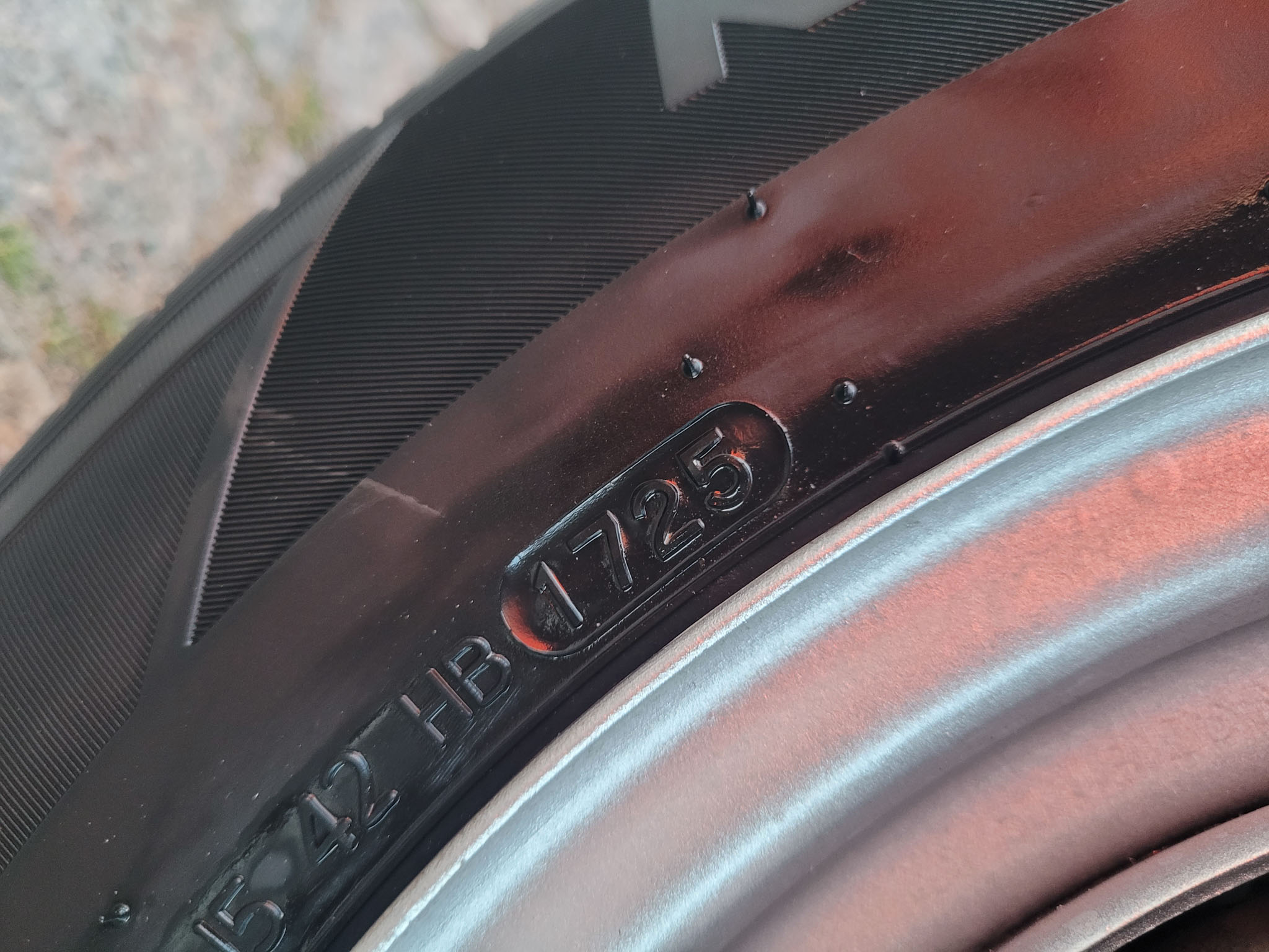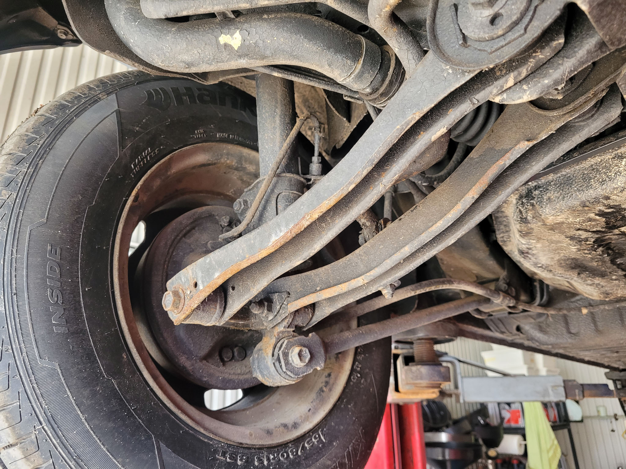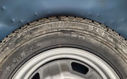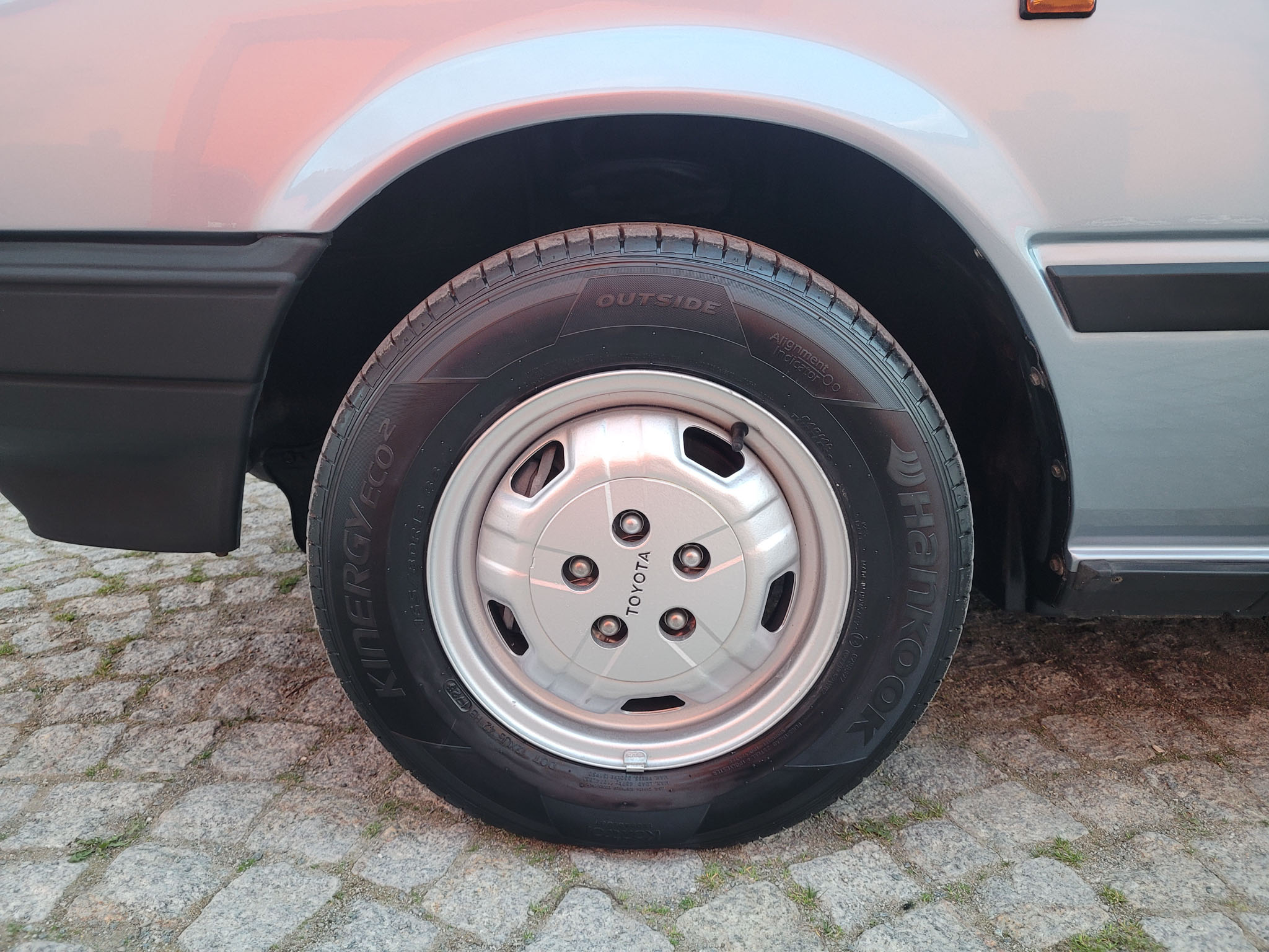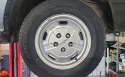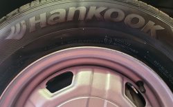 Felgi stalowe z oryginalnymi kołpakami odnowione, założony komplet nowych opon letnich Hankook. Samochód posiadał jeszcze fabryczne opony Michelin.