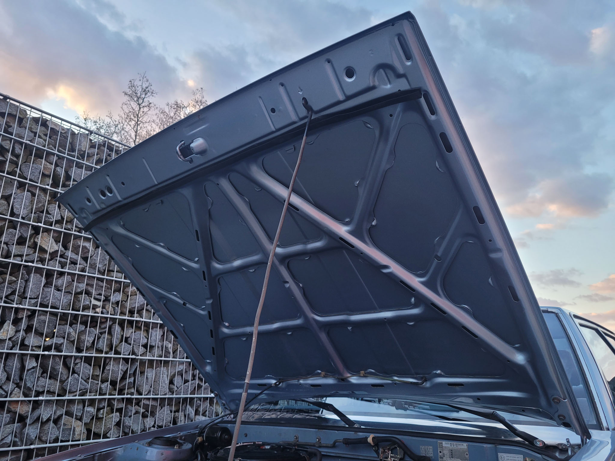 Nadwozie zachowane w perfekcyjnym stanie. Brak widocznych jakichkolwiek większych mankamentów czy korozji, co w japońskich autach z takim peselem jest rzadkością. Brak odprysków na masce. Reflektory przednie i tylne oryginalne – stan bdb. W samochodzie nie ma żadnych części nieoryginalnych czy tanich zamienników. Zderzaki nie posiadają otarć. Listwy i emblematy w bardzo dobrym stanie. Spód zachowany w stanie wzorowym – 35 zdjęć podwozia i dołów drzwi w galerii. Wszystkie szyby oryginalnie łącznie z czołową.
